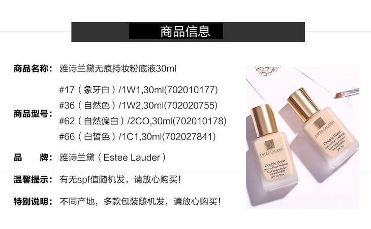 雅诗兰黛Double Wear 粉底液 SPF10/PA++ bone 1W1/1W2/2W0/1W0