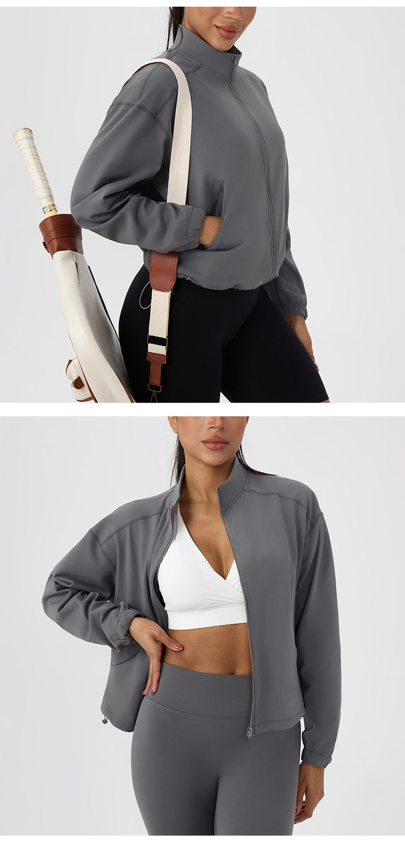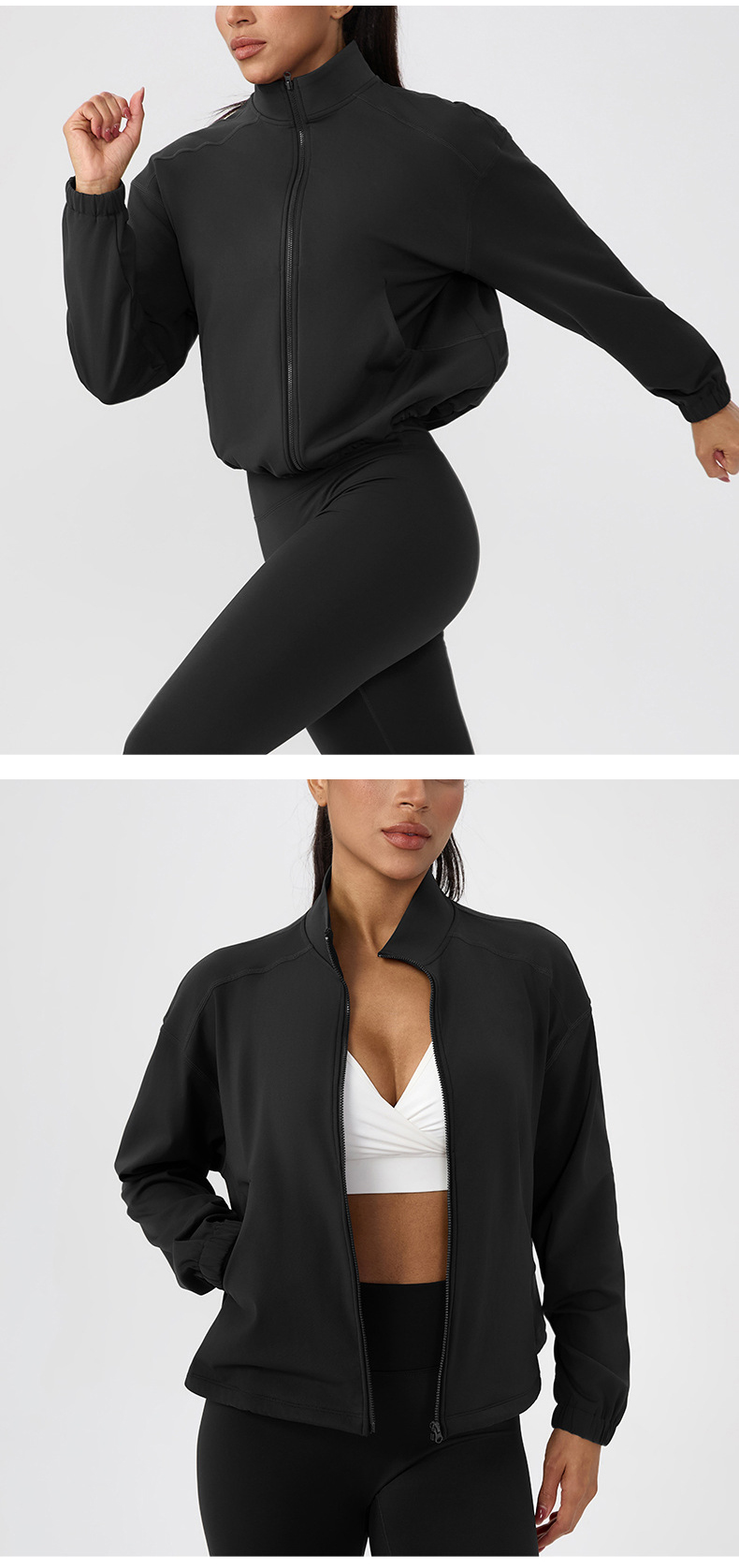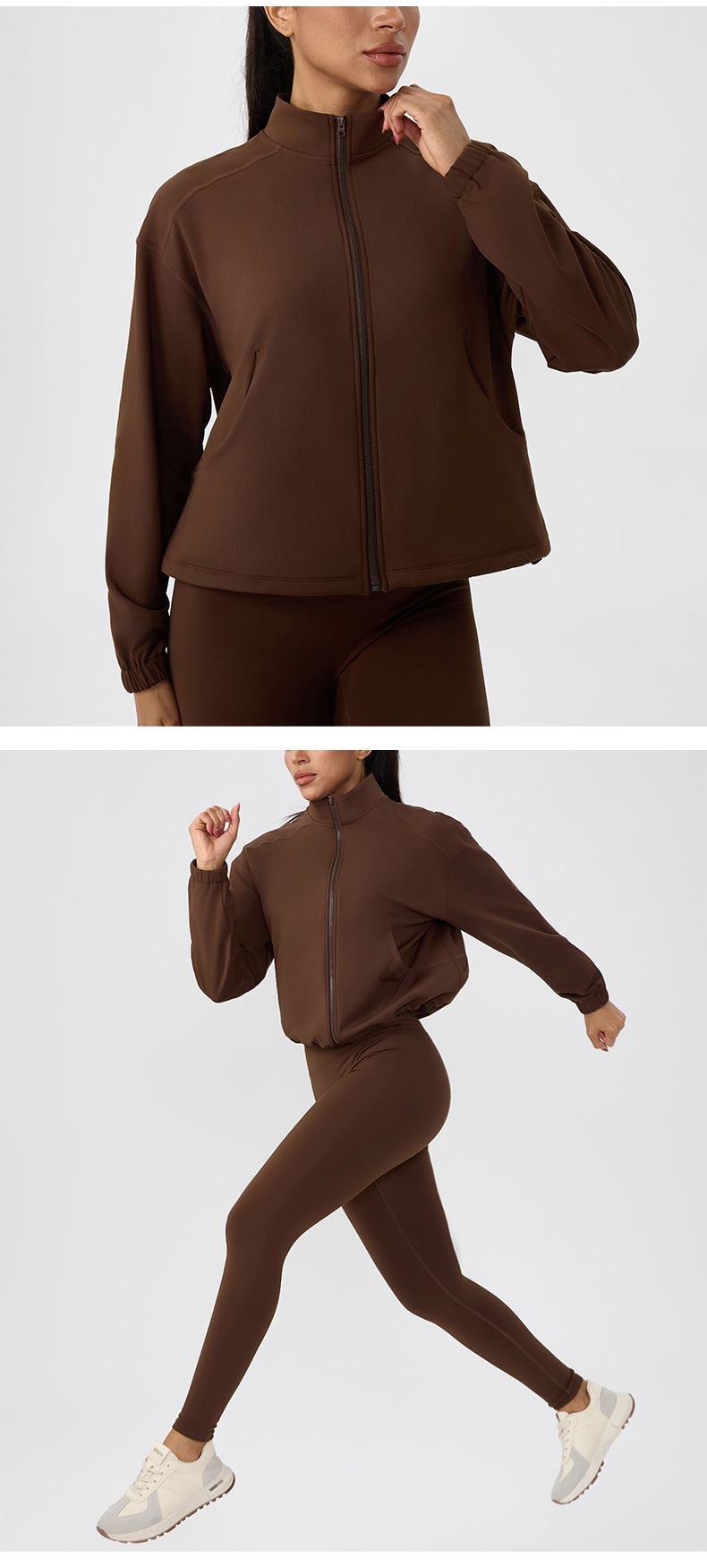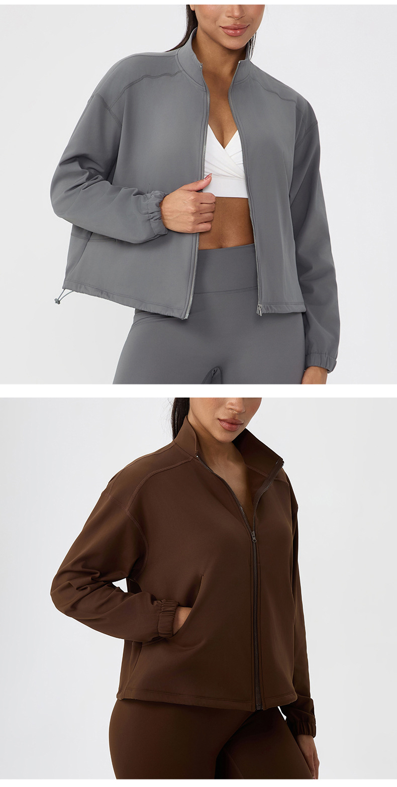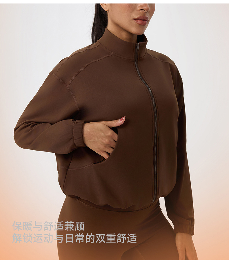 跃牌【欲动春风】系列 女秋冬加绒瑜伽服外套宽松立领拉链上衣保暖健身运动外套52630