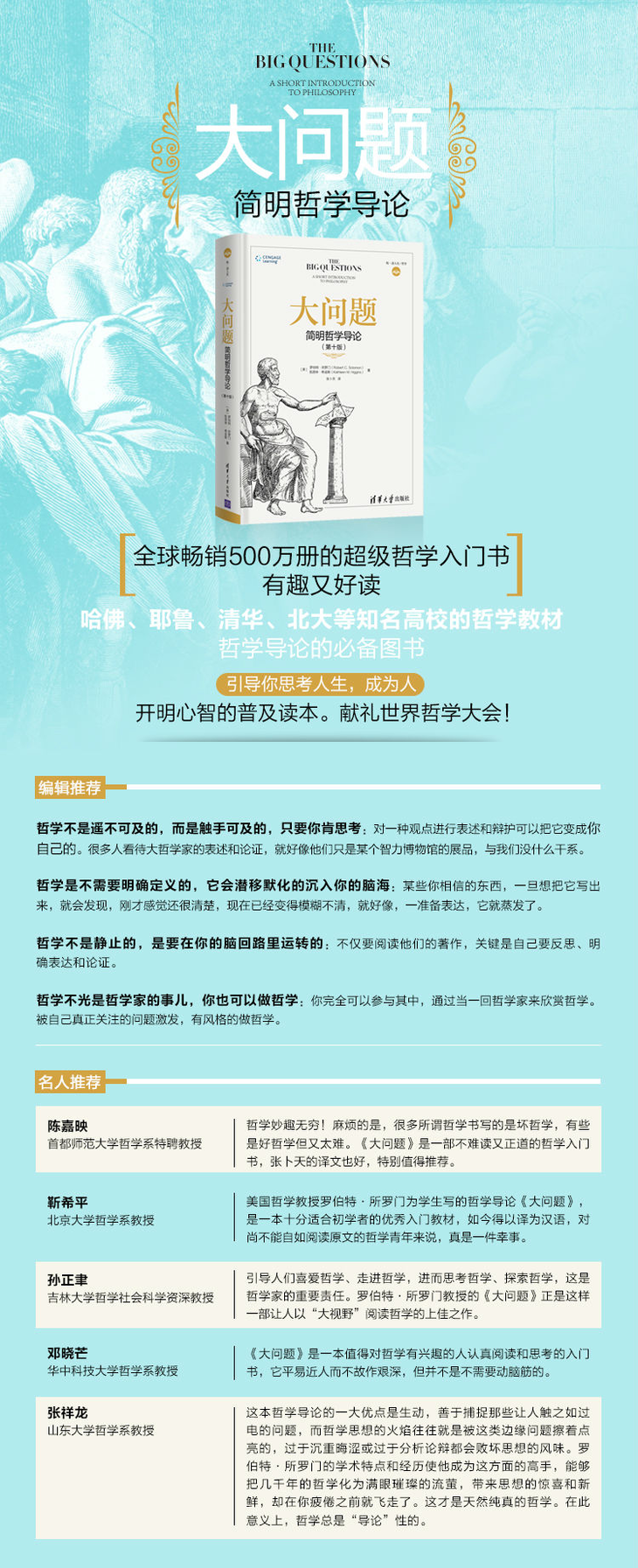 哈佛、耶鲁、清华、北大等知名高校的哲学教材,全球畅销500万册(已出至第10版),四色印刷,大开本。陈嘉映、邓晓芒等大家联袂推荐。