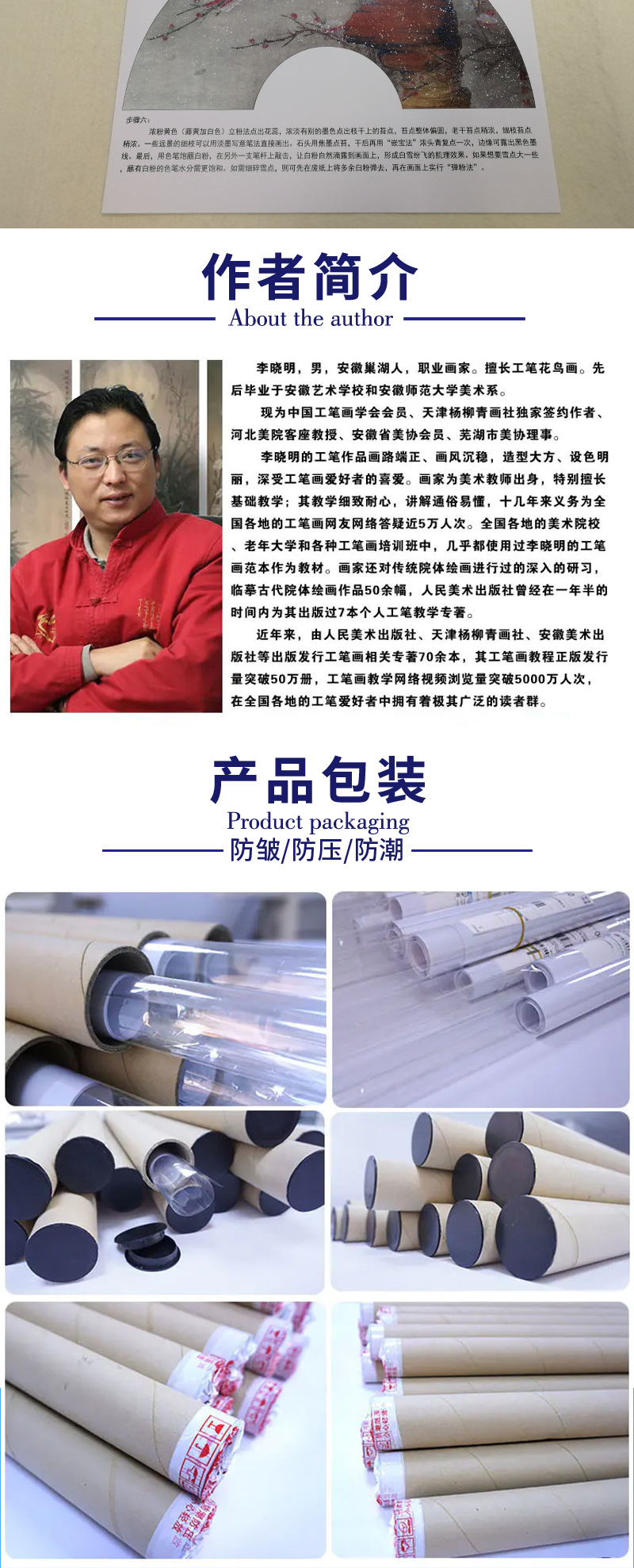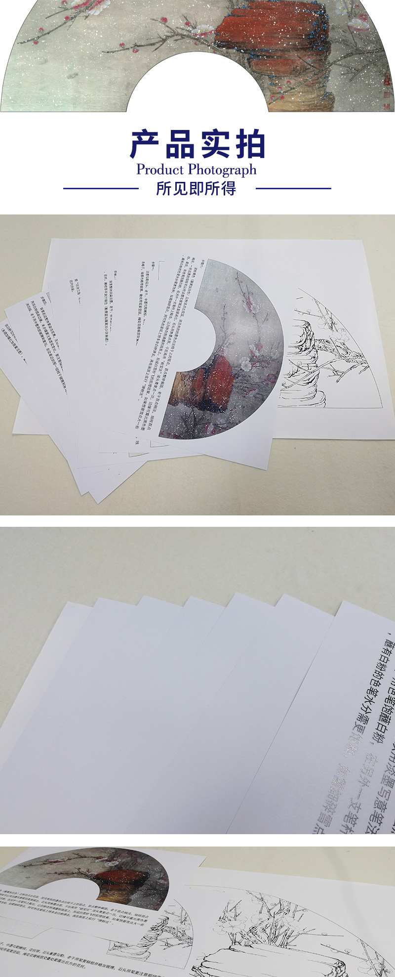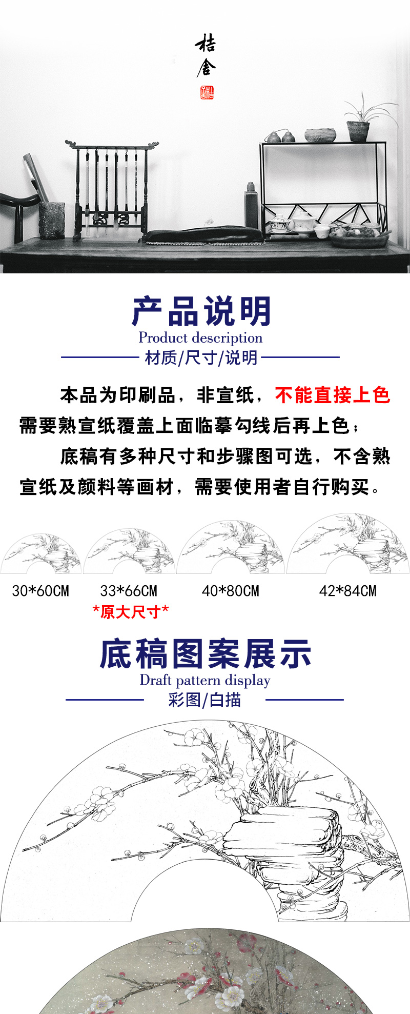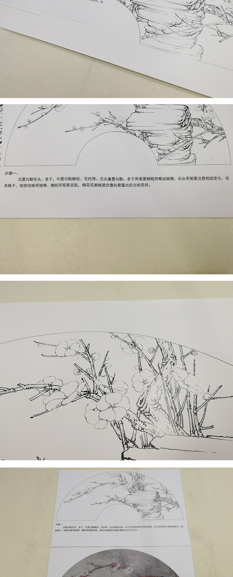 【有步骤、大彩图】李晓明工笔画白描底稿扇面《梅花》初学者临摹花鸟线稿KB39