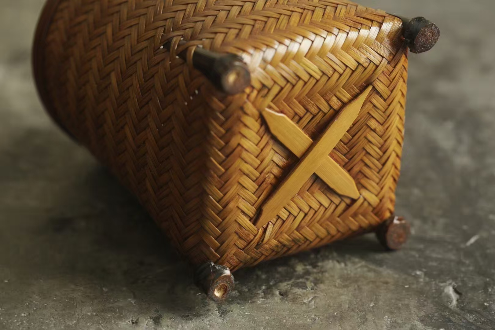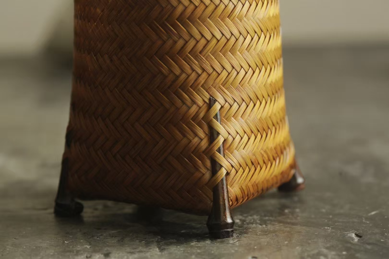 手工编织,镶嵌紫竹节做底脚,盖子紧实不易松动,做工细致,通体覆盖天然环保大漆,色泽古朴,不开裂变形。手感舒适,正反如一。