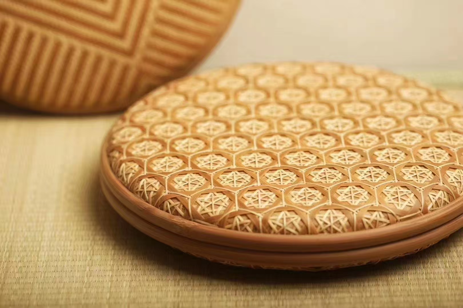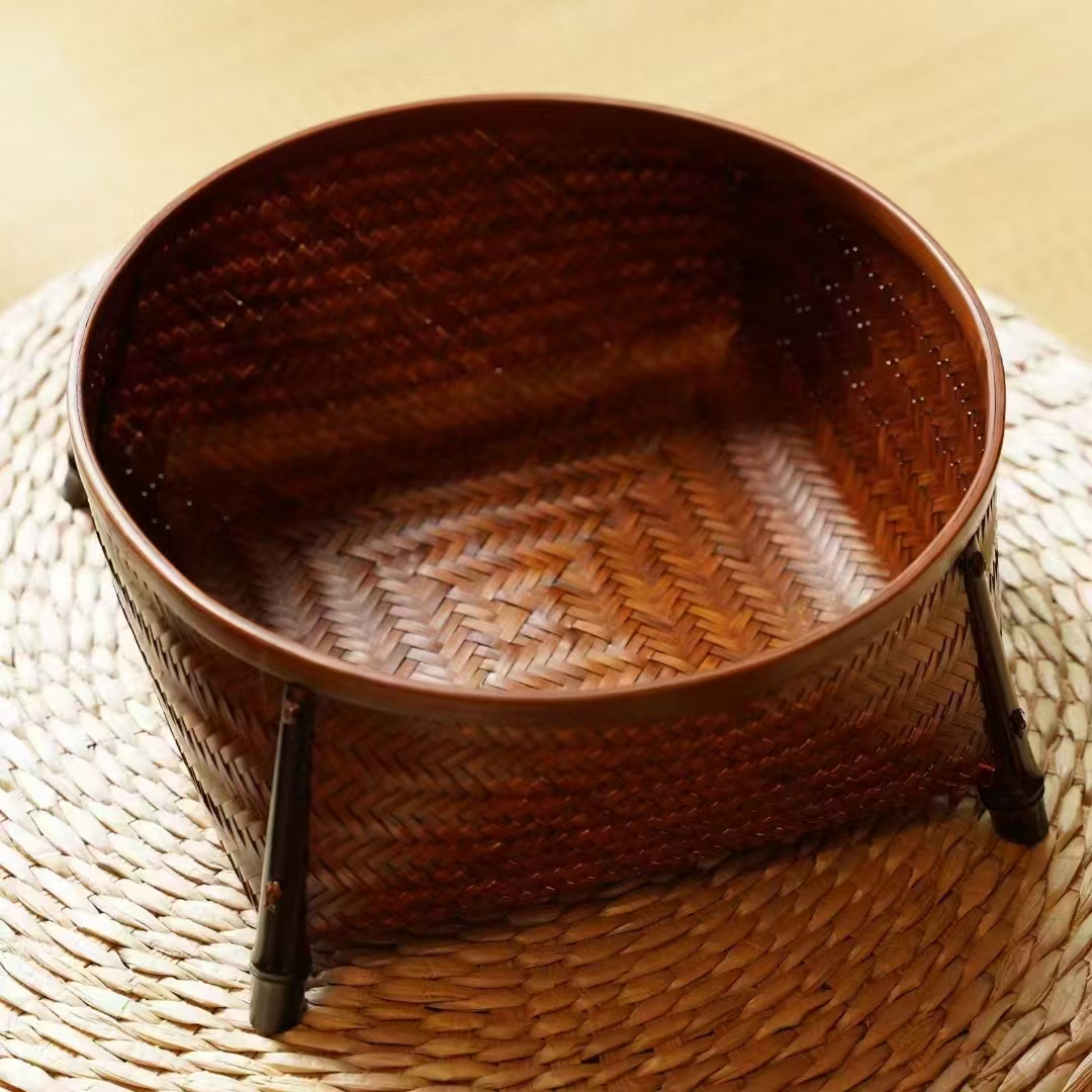 边框加宽竹片固定,经过高温炭化,防虫防霉,整体一体编织,精细打磨,放置平稳。
