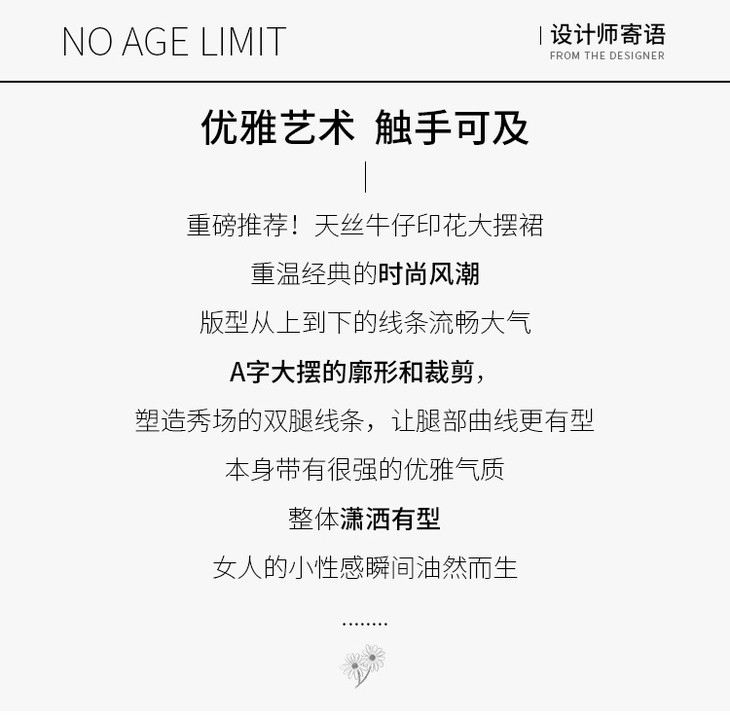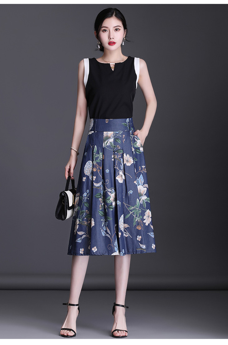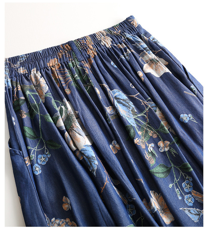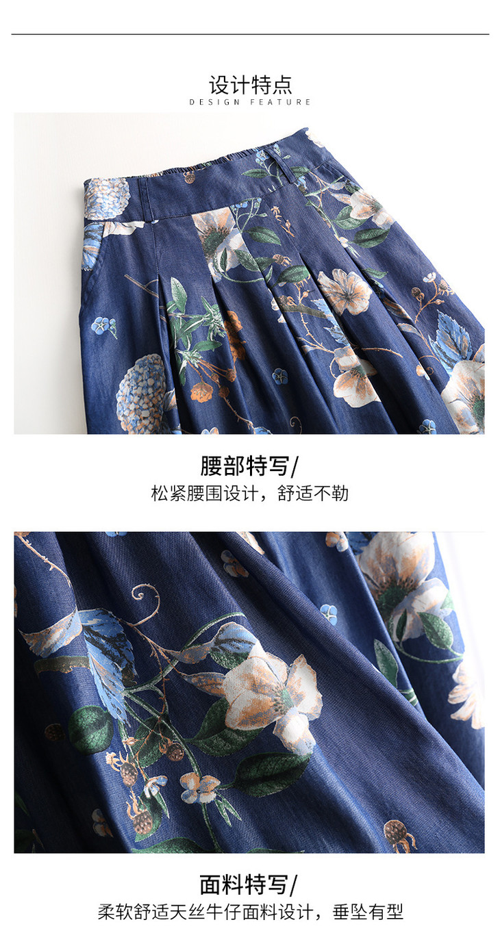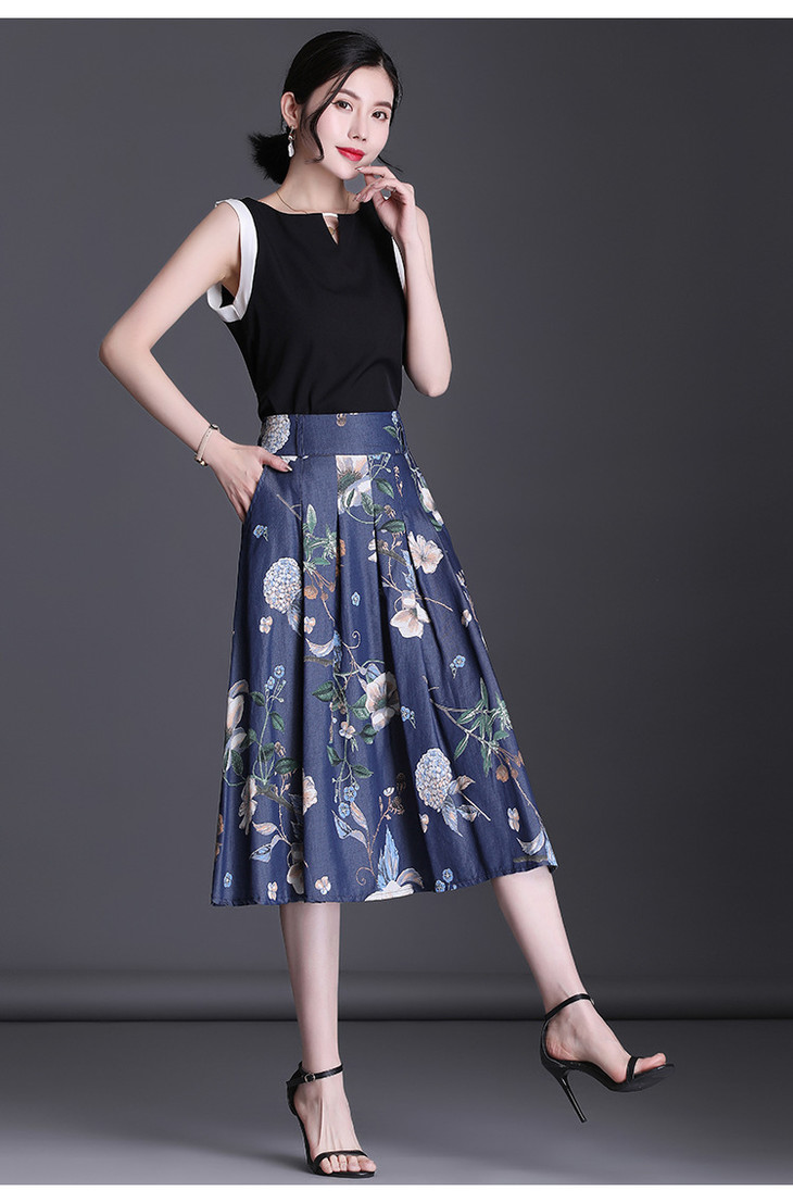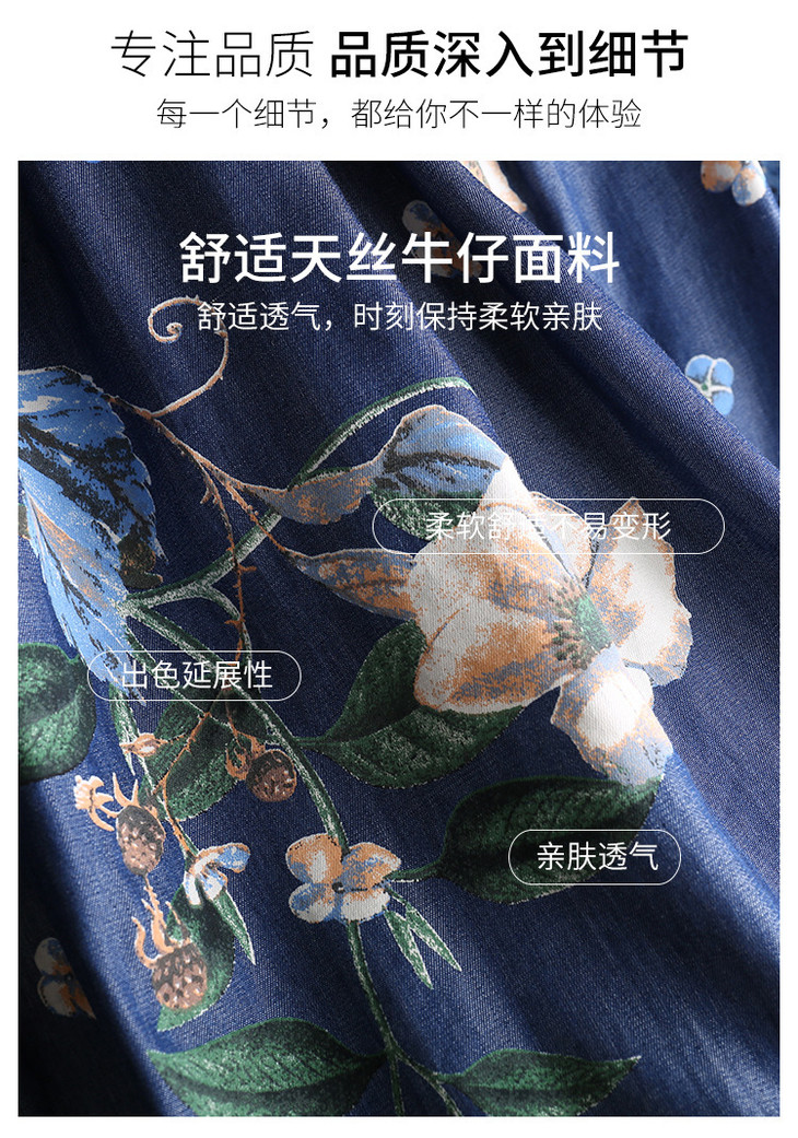 TY3088 天丝牛仔半身裙松紧腰印花夏季新款气质大摆a字中长裙