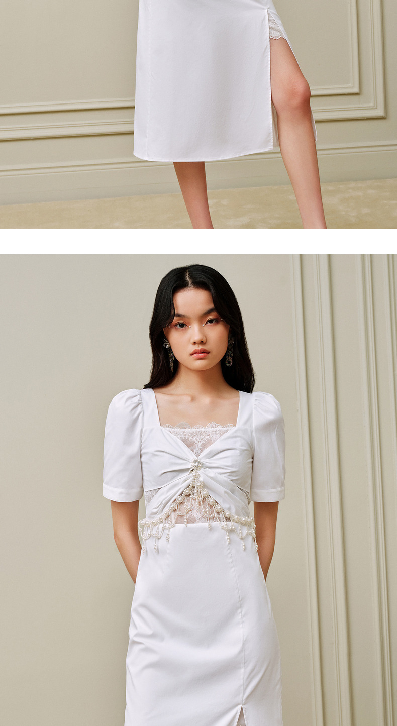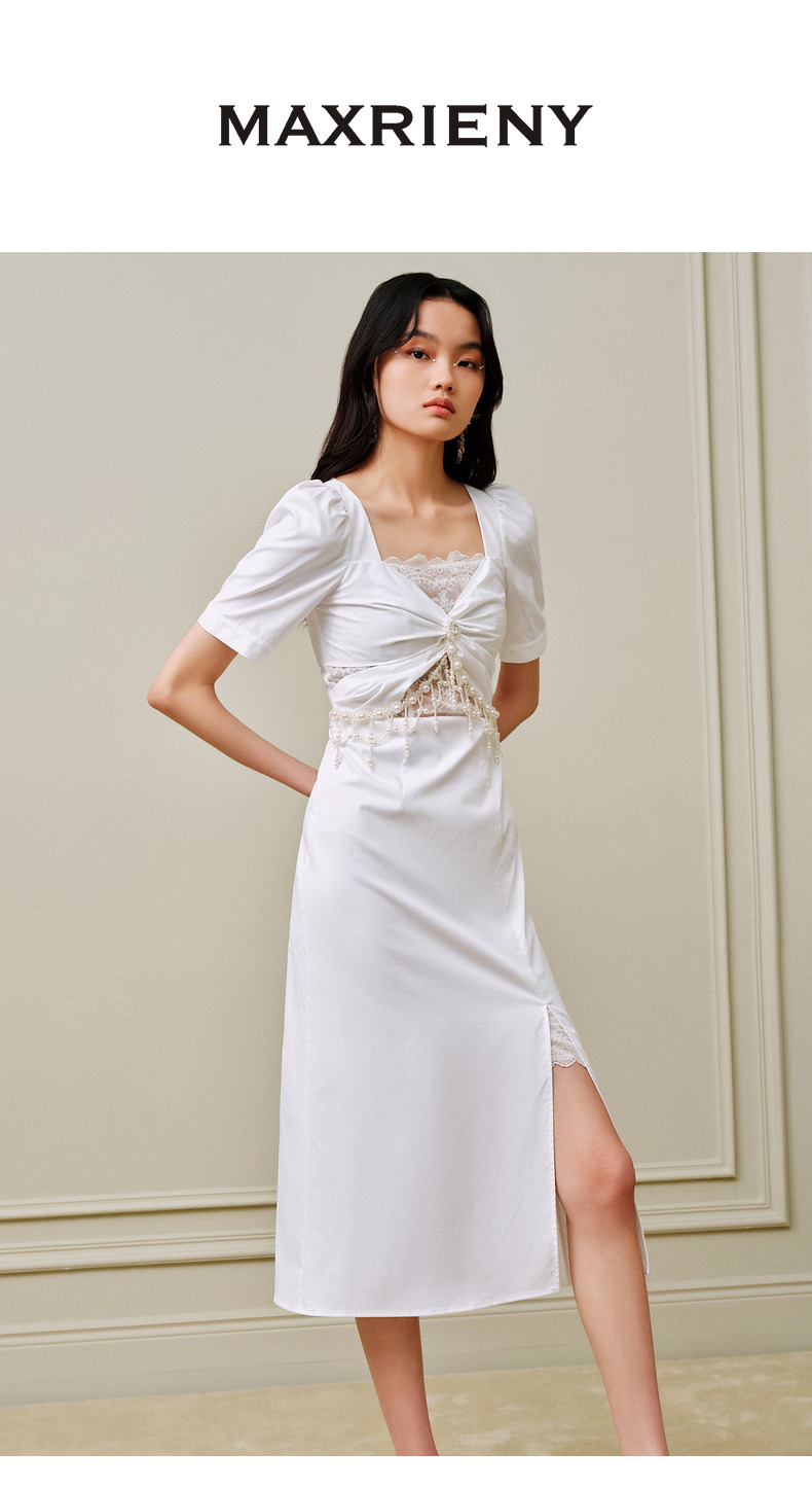 MAXRIENY*御姐风开叉连衣裙镂空小白裙派对礼裙(货号:MC88DR378)