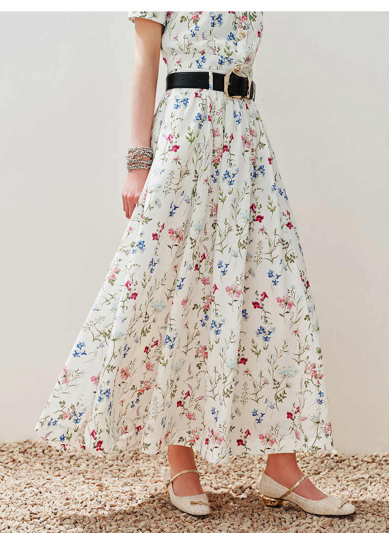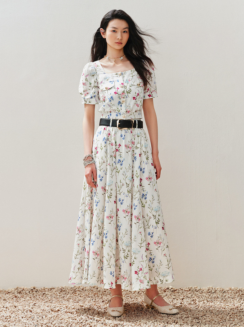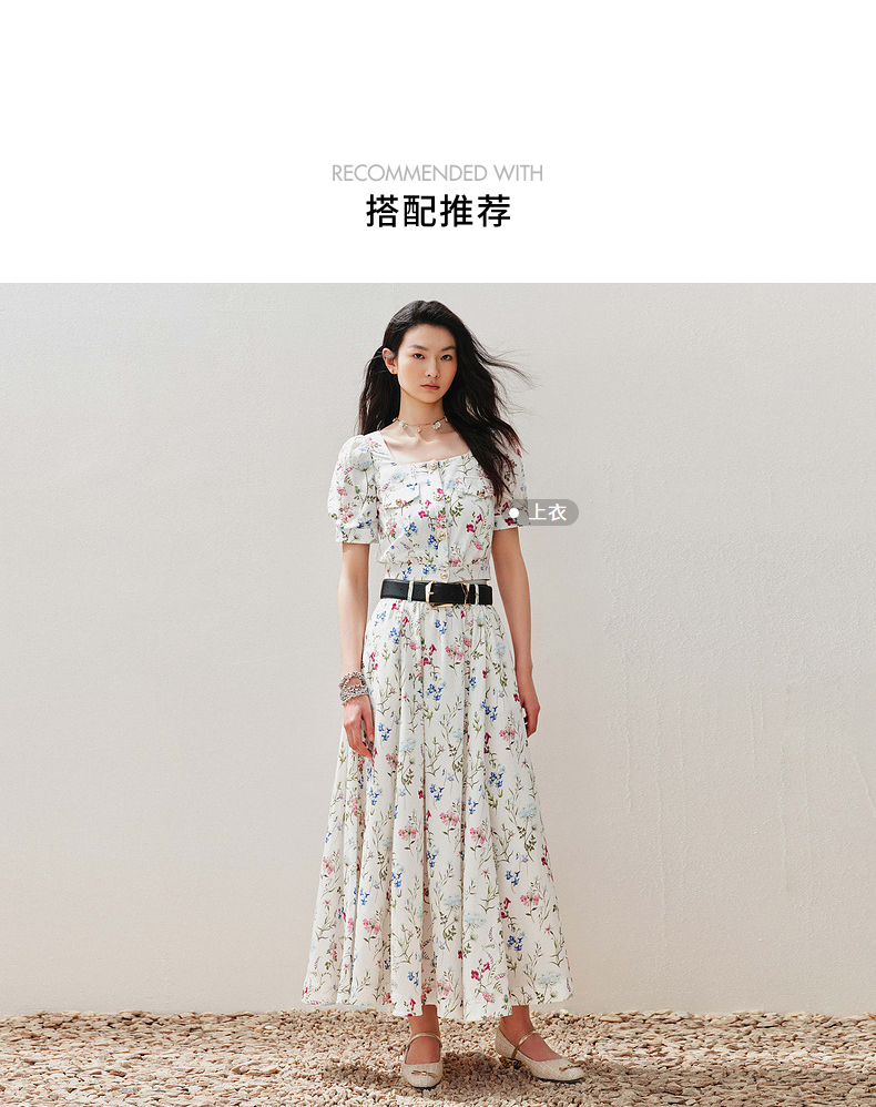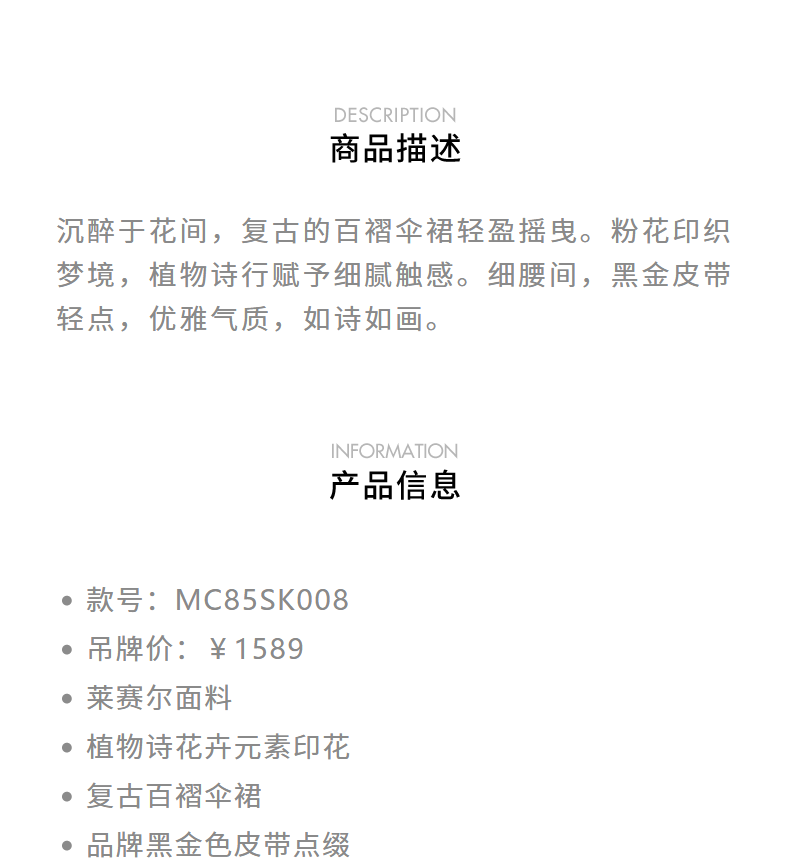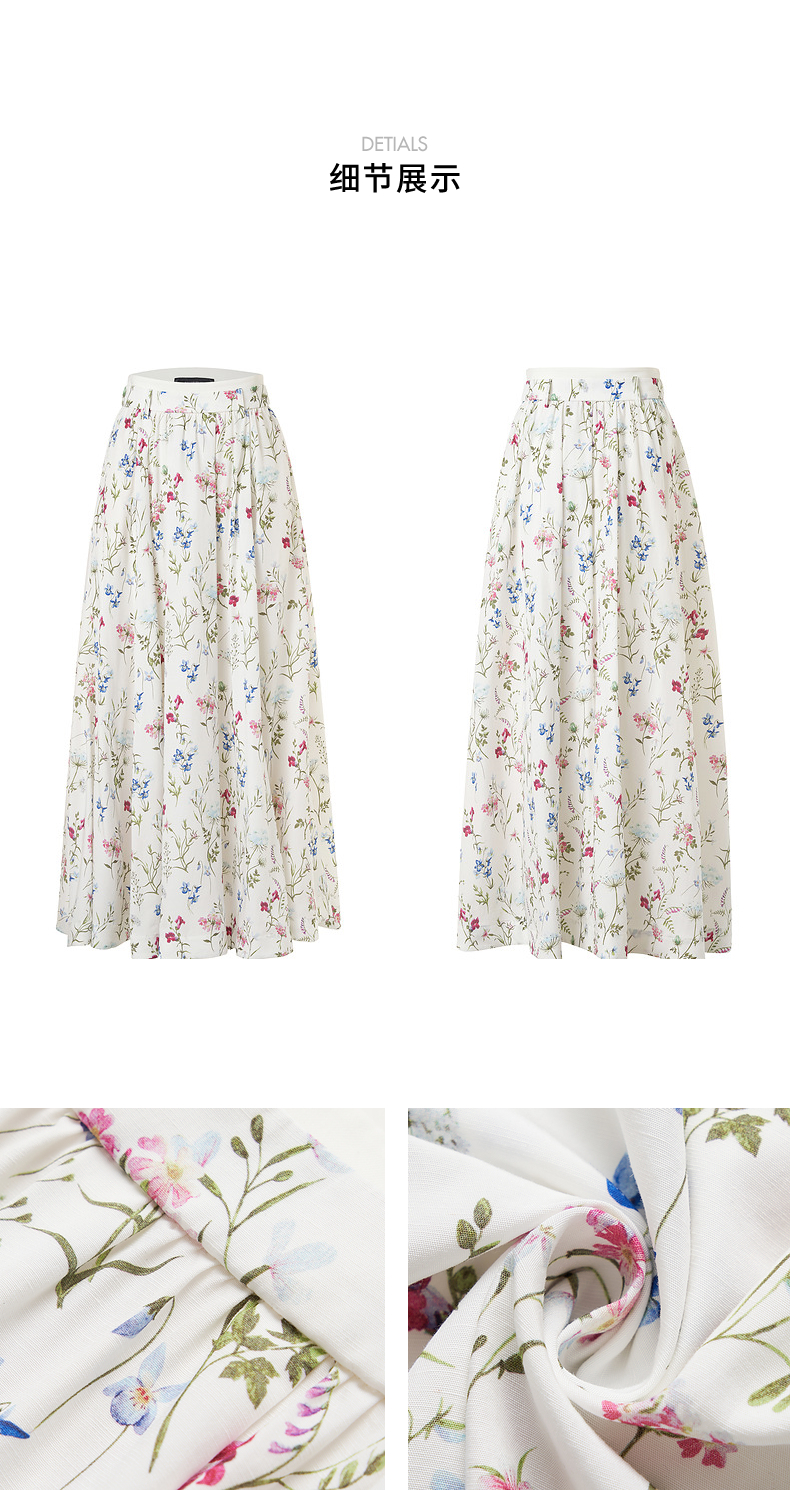 玛克门店发货:【浪漫花园-商场同款】MAXRIENY复古诗意花卉百褶裙2024半身裙夏(货号:MC85SK008)