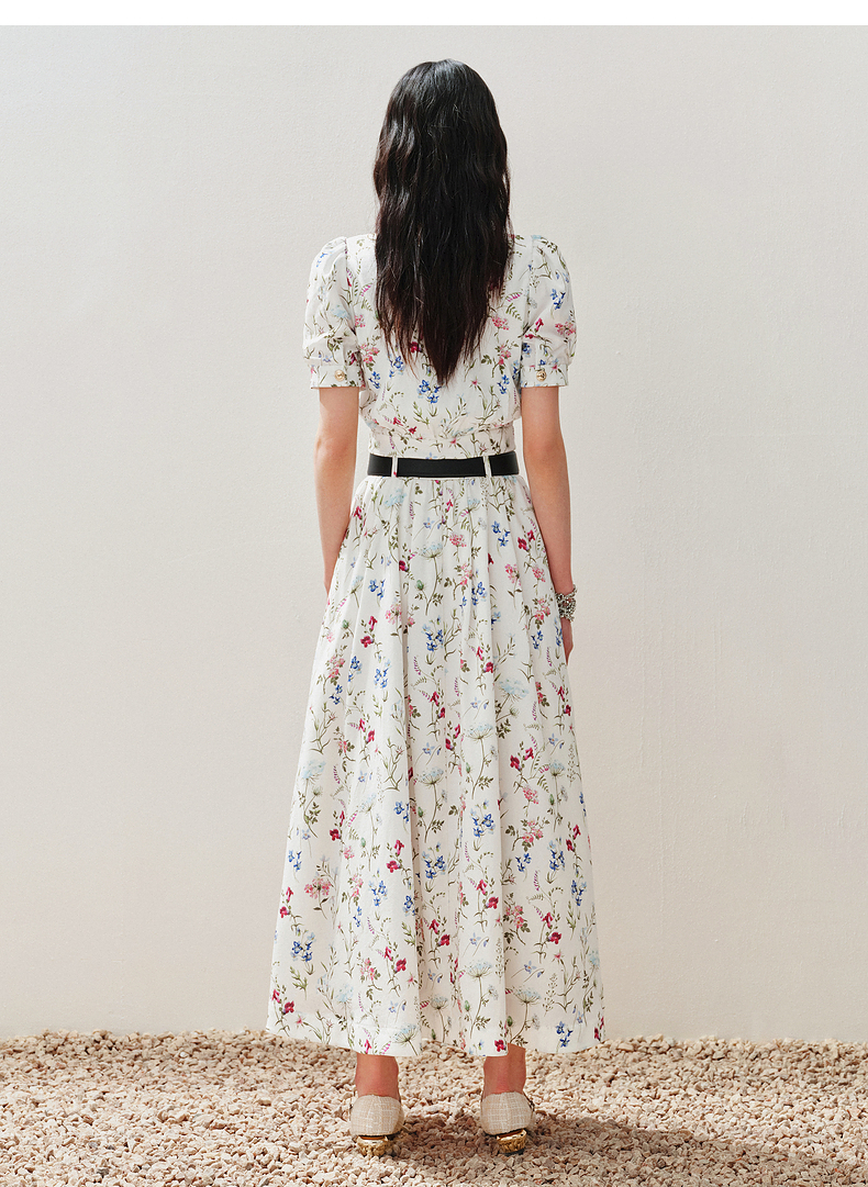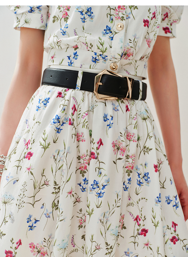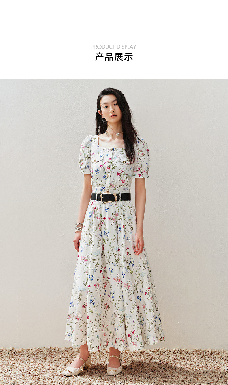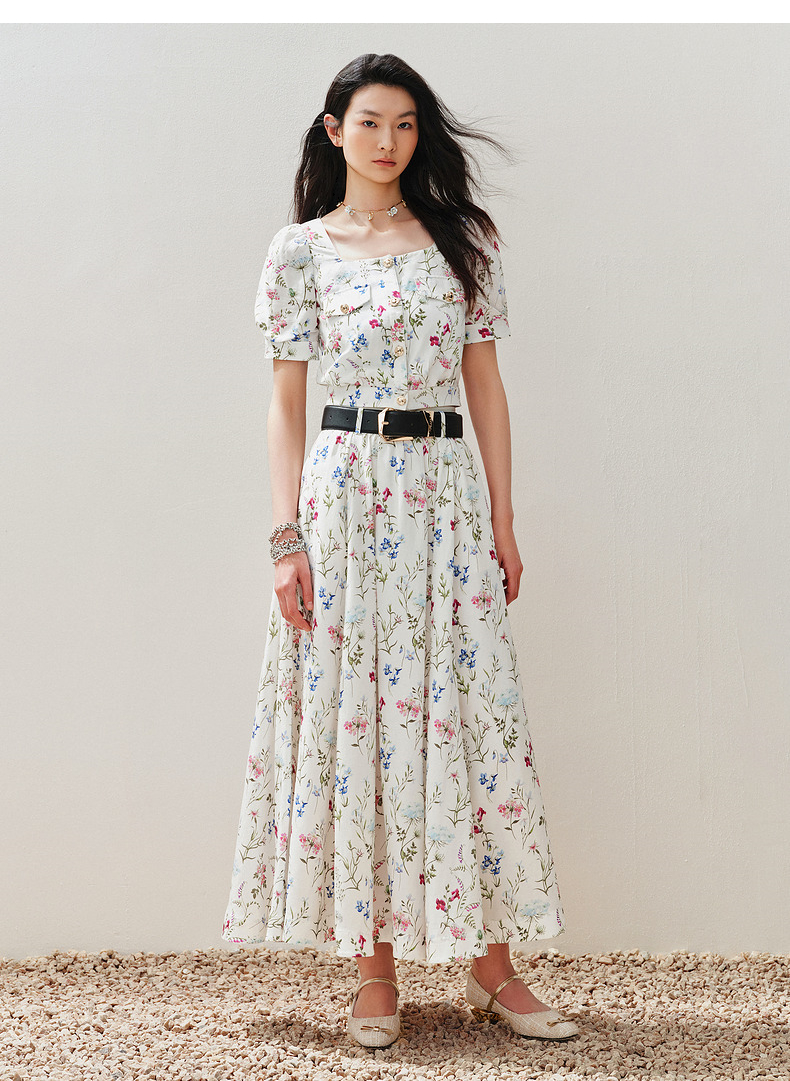 玛克门店发货:【浪漫花园-商场同款】MAXRIENY复古诗意花卉百褶裙2024半身裙夏(货号:MC85SK008)