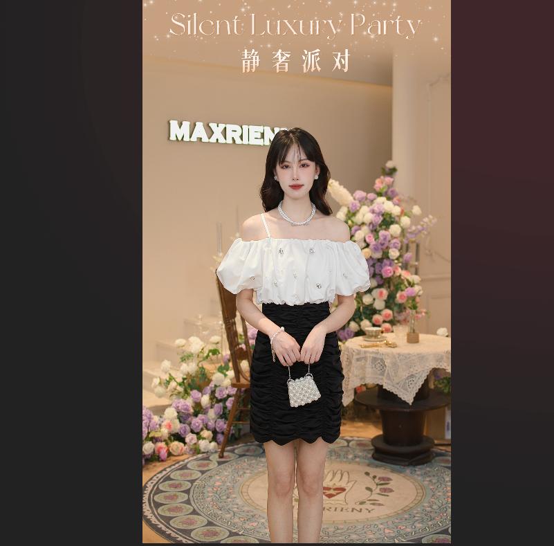 MAXRIENY法式一字肩泡泡袖甜美连衣裙(货号:MS85DR076)