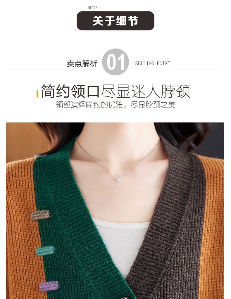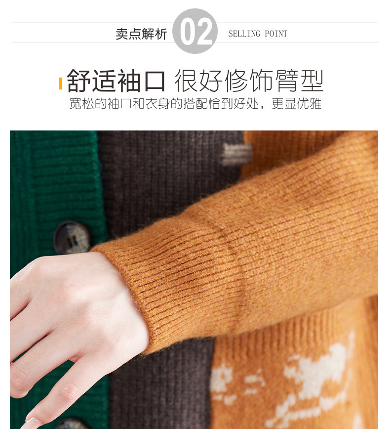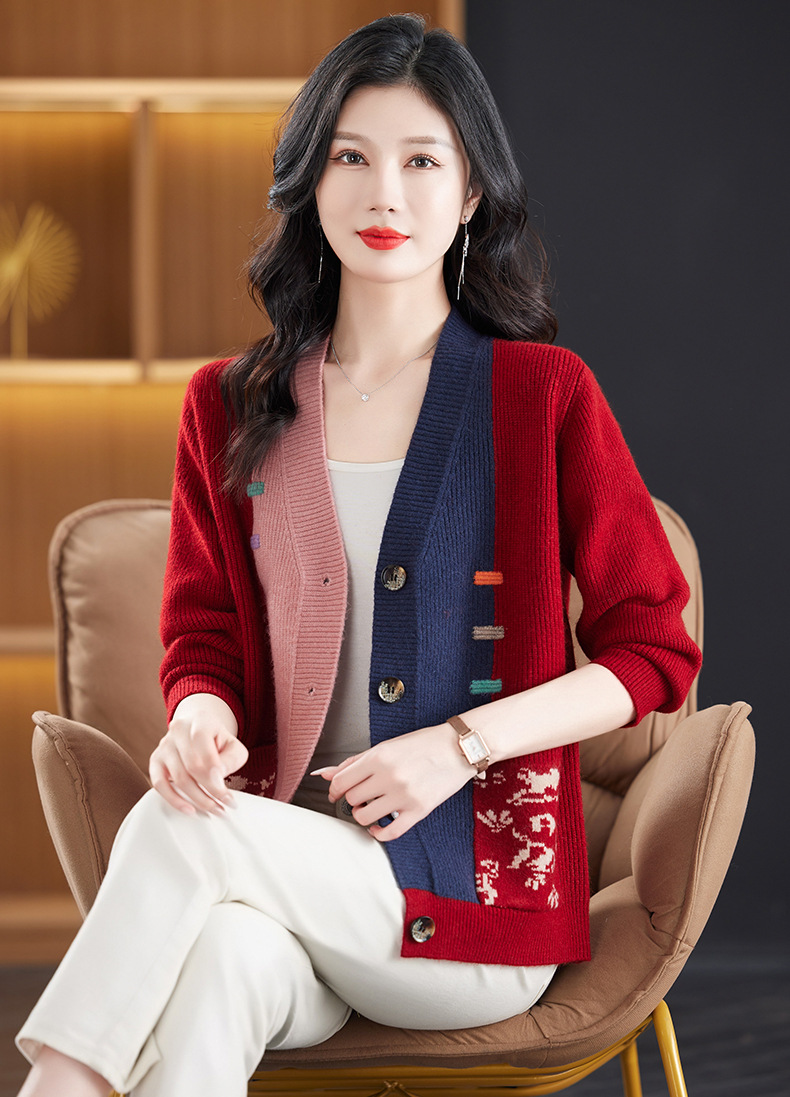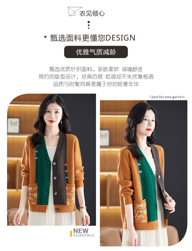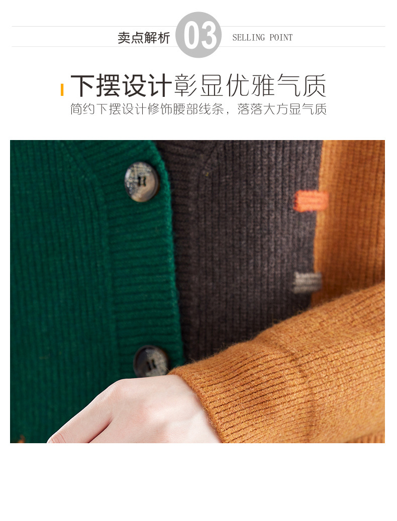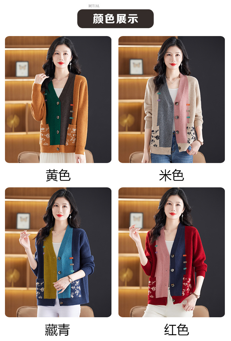 CC-17-5718秋冬新款宽松复古拼接外搭上衣宽松休闲撞色V领针织外套上衣