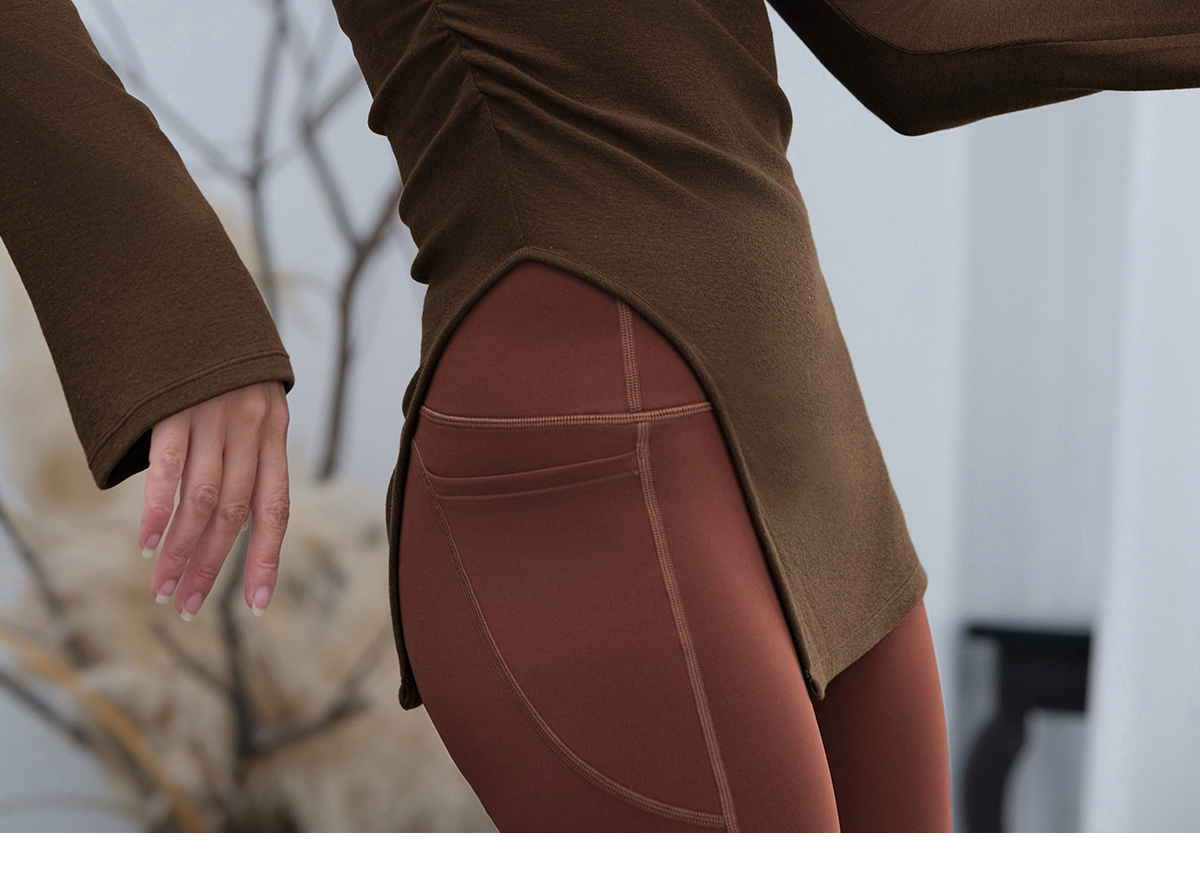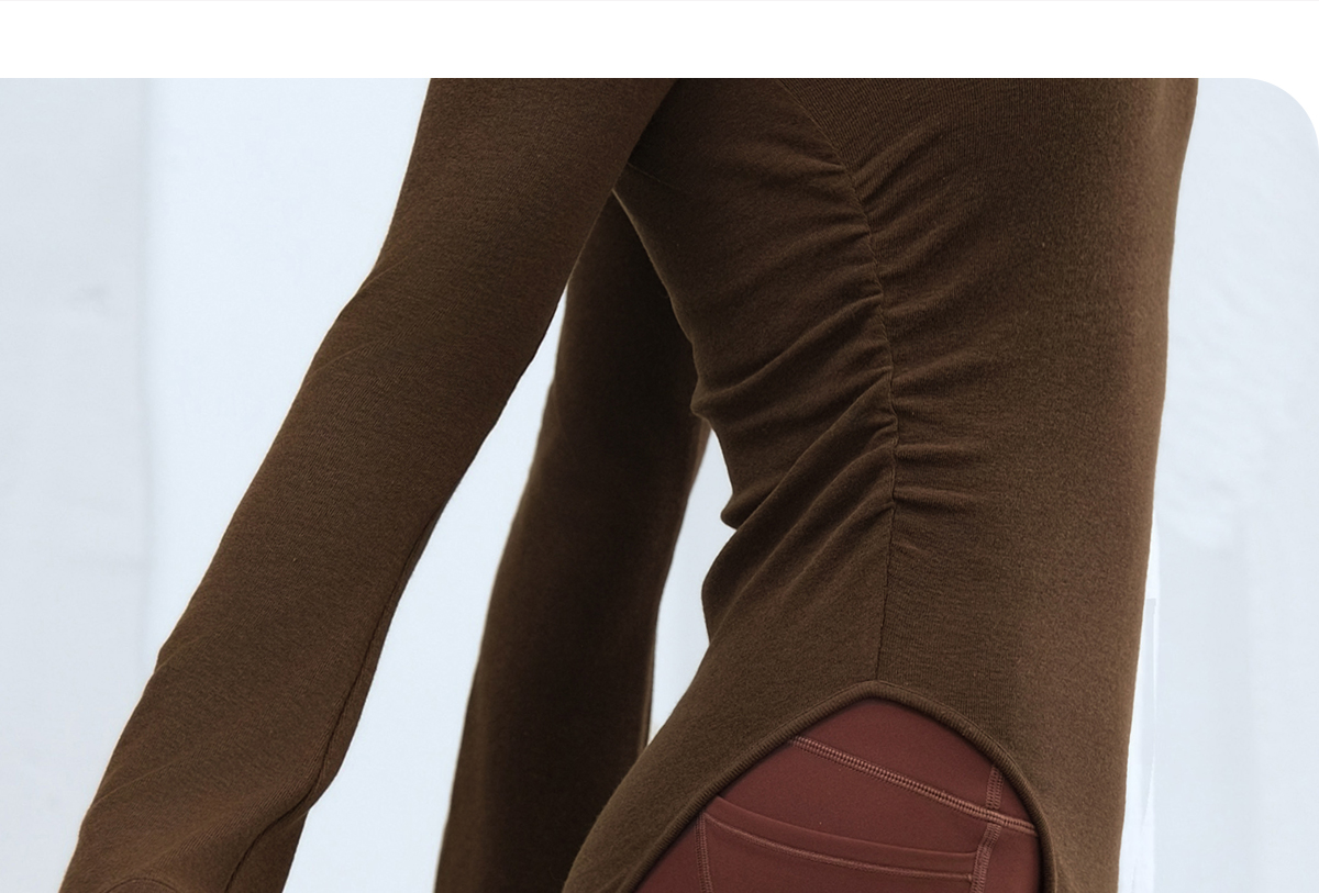 爱暇步长袖瑜伽服女带胸垫一体普拉提训练服2025新款健身运动上衣