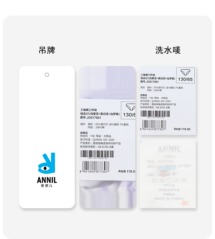 女童三角裤三件装春季新款安奈儿童装实体店同款JG517561