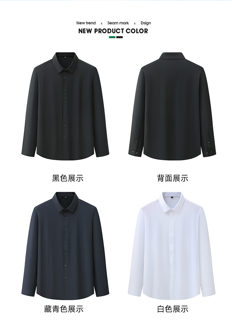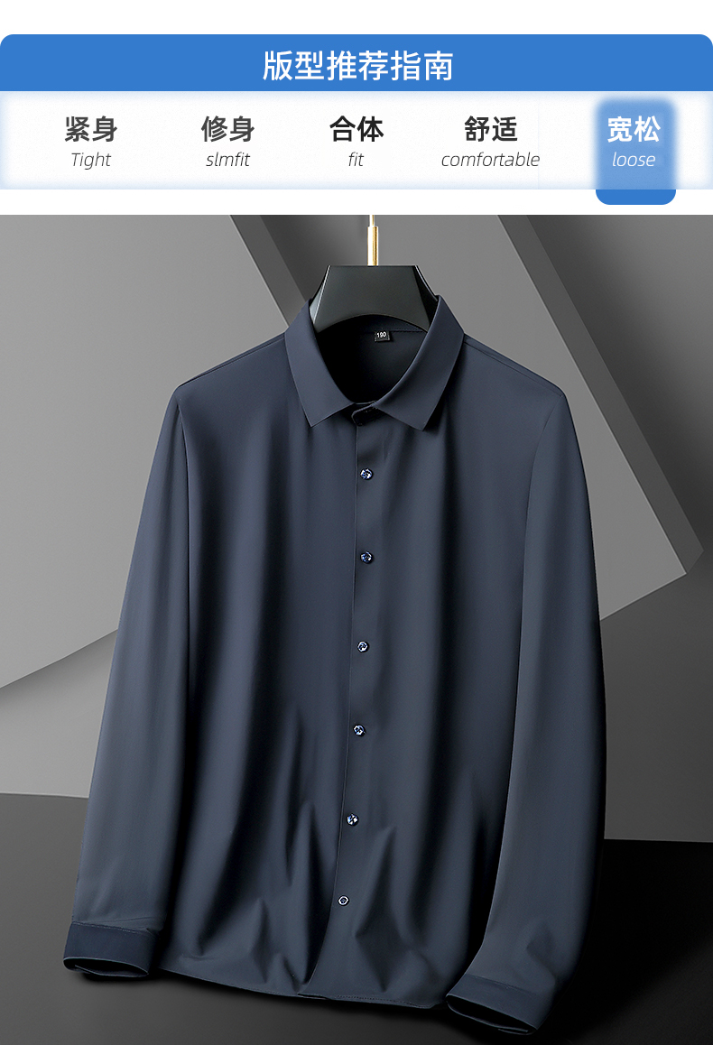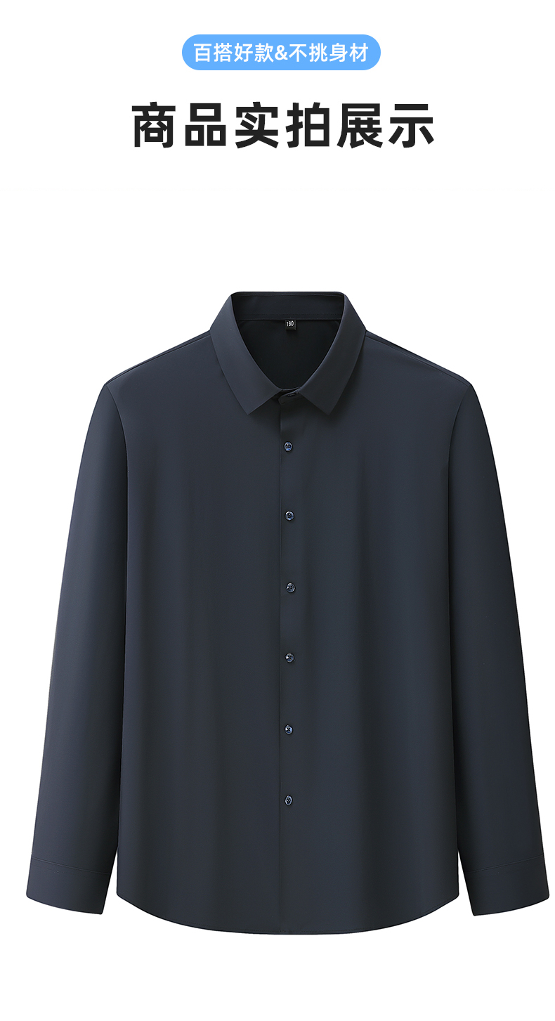 【Q】【新款DM】大依优型长袖衬衫加肥加大男装弹力免烫大号纯色大码衬衣高弹净版