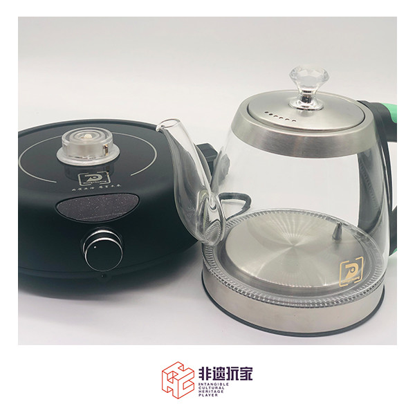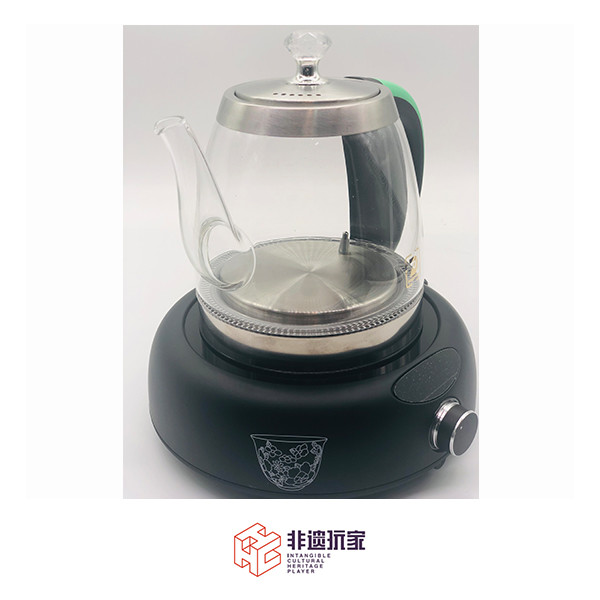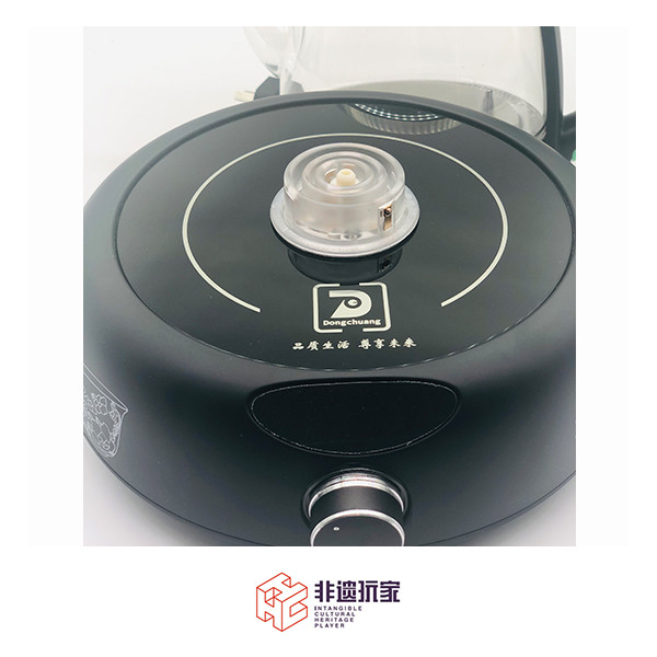 非遗玩家和东创实业合作推出音乐养生茶煮茶器,此产品采用透明高硼硅玻璃壶体,食品级304不锈钢等材料,0辐射环保健康;而且具有温控防干烧,防漏电,防灰层功能保护,烧开后恒温,避免干滚水,多重保护、安全放心。