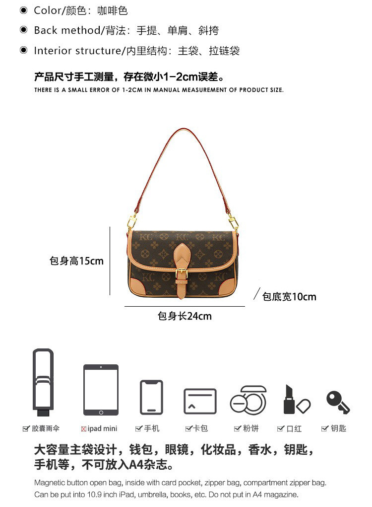 丁摩 腋下包女新款复古百搭老花高级感女士单肩斜挎小包5ZF-5191