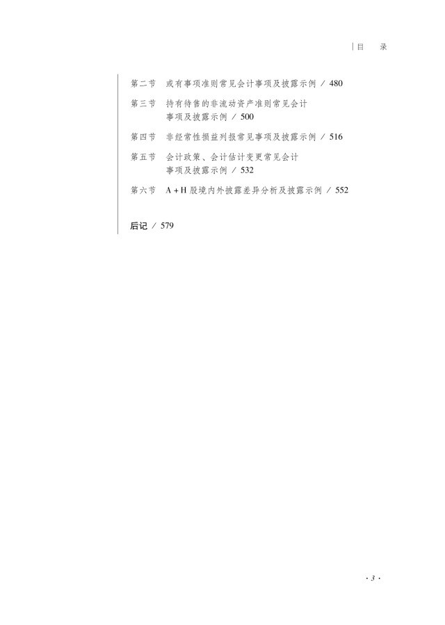 本书除了关注企业会计准则规范的主要事项,对部分证监会监管指标的披露也进行了整理,例如非经常性损益常见事项的披露。本书还及时跟踪了2017年新发布的《企业会计准则第16号-政府补助》的披露。A+H股境内外披露差异分析及披露示例则按照确认计量差异、列报差异和披露差异将企业会计准则(CAS)与国际财务报告准则(IFRS)的主要差异进行了汇总,有助于有境外资本市场需求的企业的“走出去”战略。