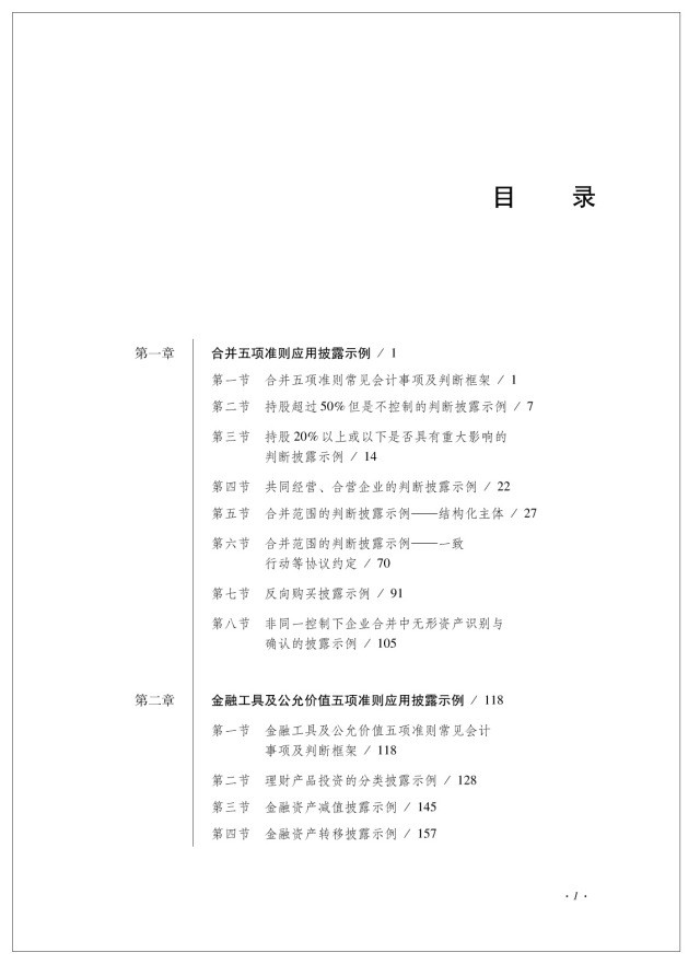 会计处理的最终反映是披露。会计信息披露质量的关键在于披露是否真实可靠,披露是否充分及时以及披露的对象之间是否具有可比性。真实、可靠源自于企业对会计准则的理解和应用,以长期股权投资、合并财务报表为例,涉及如何判断控制、针对不同性质的被投资单位判断控制的主要考虑因素有哪些、持股超过50%但认定为不控制的原因是什么、持股20%以上是否一定对被投资单位能够实施重大影响等等,在实务当中都需要企业根据不同的情况作出判断和处理。准则涉及的内容繁多且部分准则要求较为原则,单纯地靠知识点记忆很难应对复杂的实务情形。本书以结构化、系统化的方式将准则的内容进行提炼,独特和创新之处在于每一章节都对准则的判断框架和适用流程以图表的形式进行了梳理;同时辅以上市公司年报中针对同类型事项的示例,会计处理和披露一目了然。