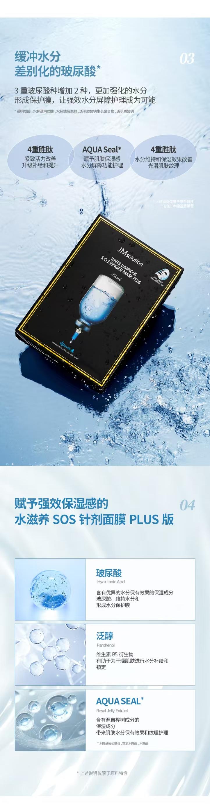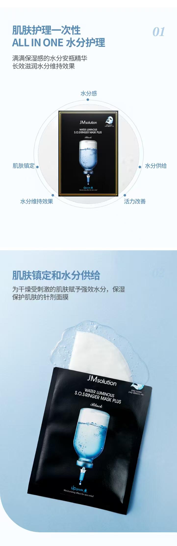 【新升级】韩国肌司研JM solution水滋养水盈补水面膜(黑臻版)35ml*10片(plus版本)