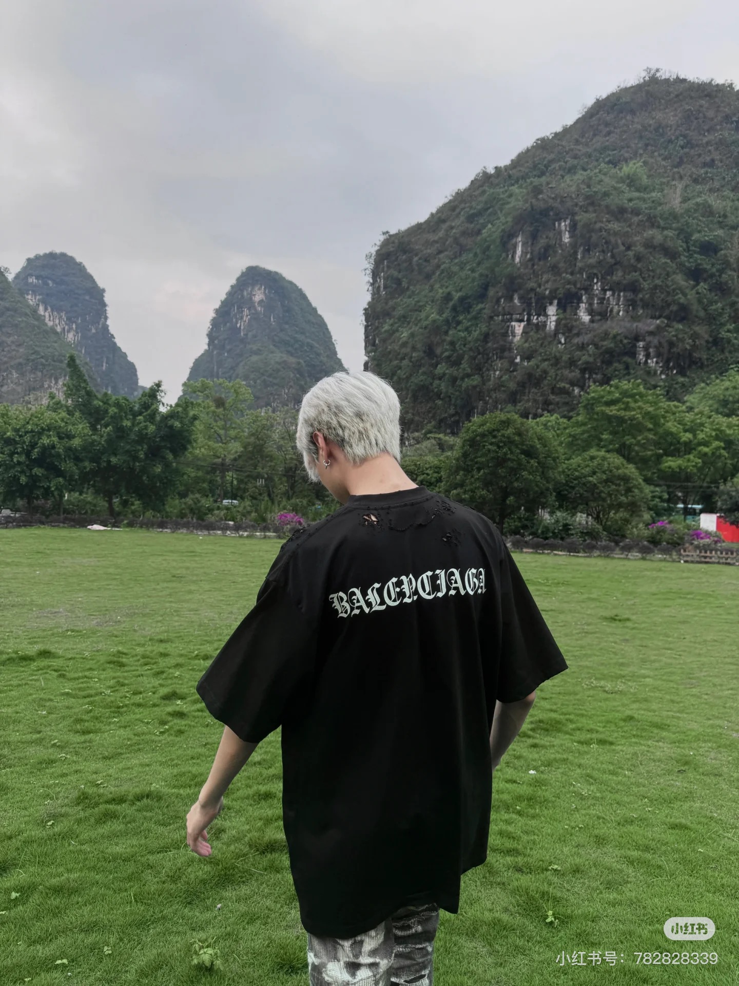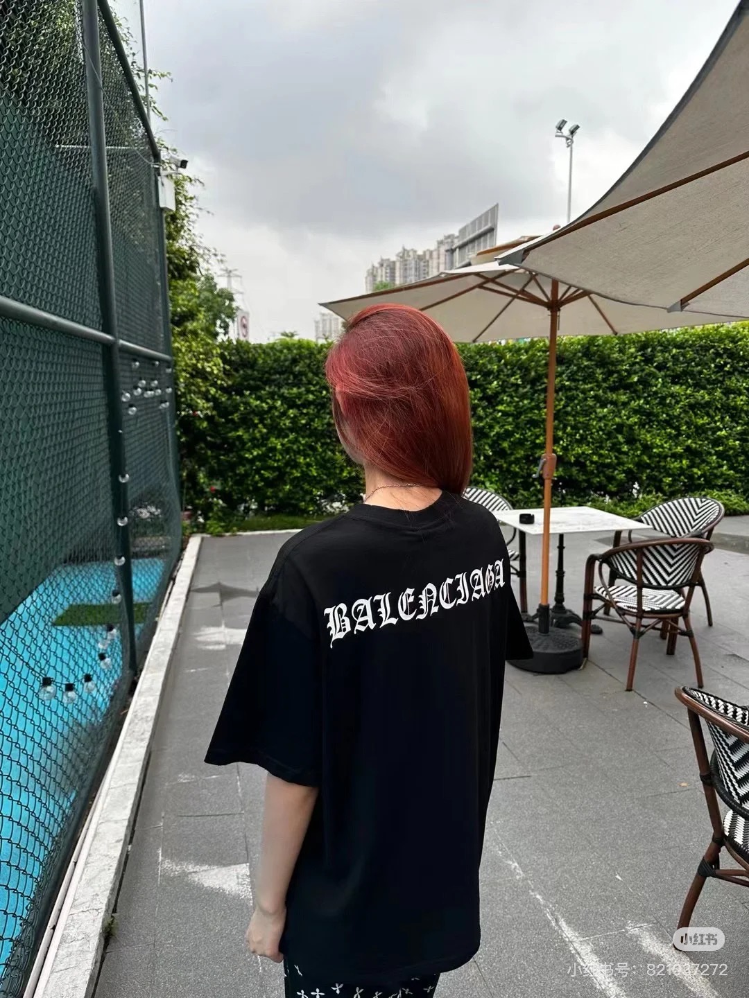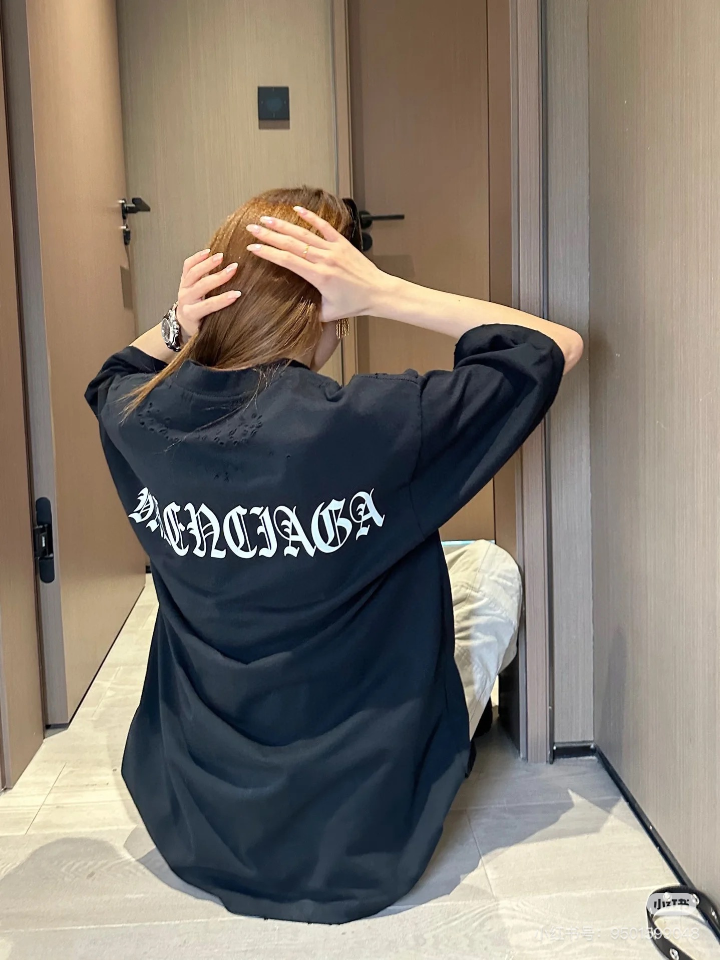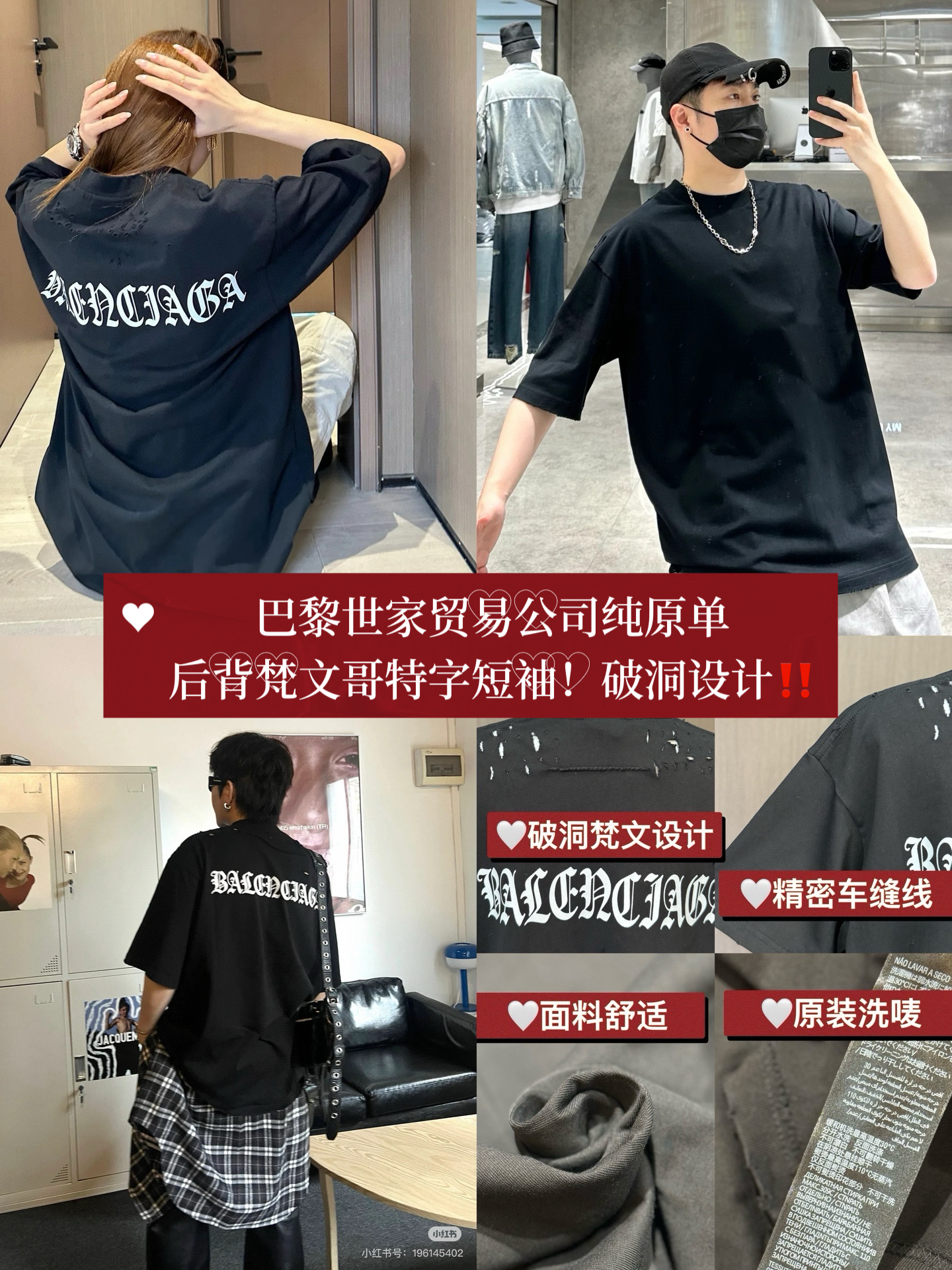 来!拼手速抢!贸易公司纯原尾单!巴黎小子 24SS 后背梵文哥特字短袖!这件Balenciaga巴黎世家短袖T恤的版型设计十分出色。它采用经典的圆领套头款式,宽松的版型既舒适又时尚,能够很好地修饰身材,适合各种体型的人穿着。