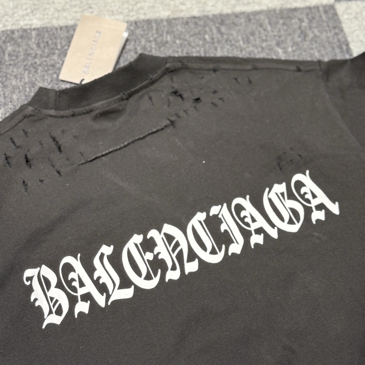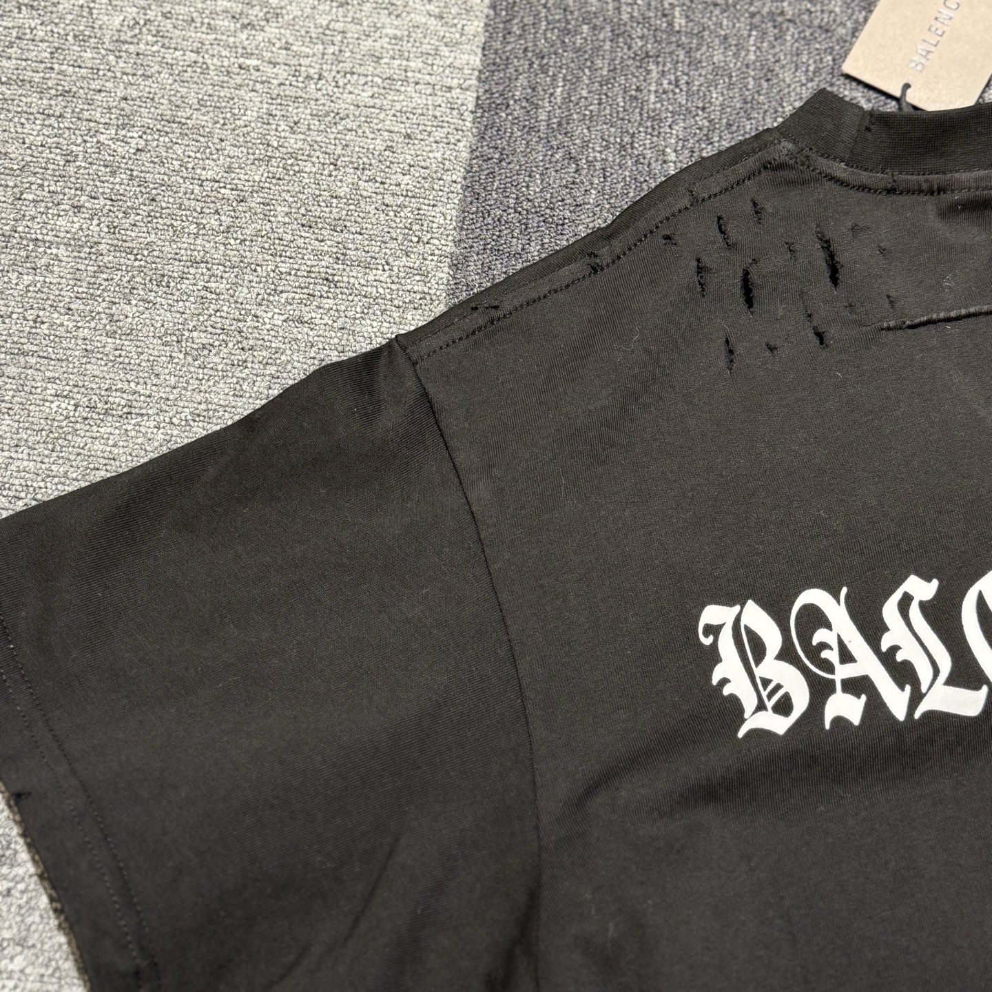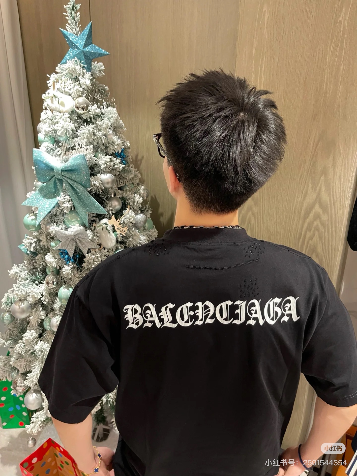 来!拼手速抢!贸易公司纯原尾单!巴黎小子 24SS 后背梵文哥特字短袖!这件Balenciaga巴黎世家短袖T恤的版型设计十分出色。它采用经典的圆领套头款式,宽松的版型既舒适又时尚,能够很好地修饰身材,适合各种体型的人穿着。
