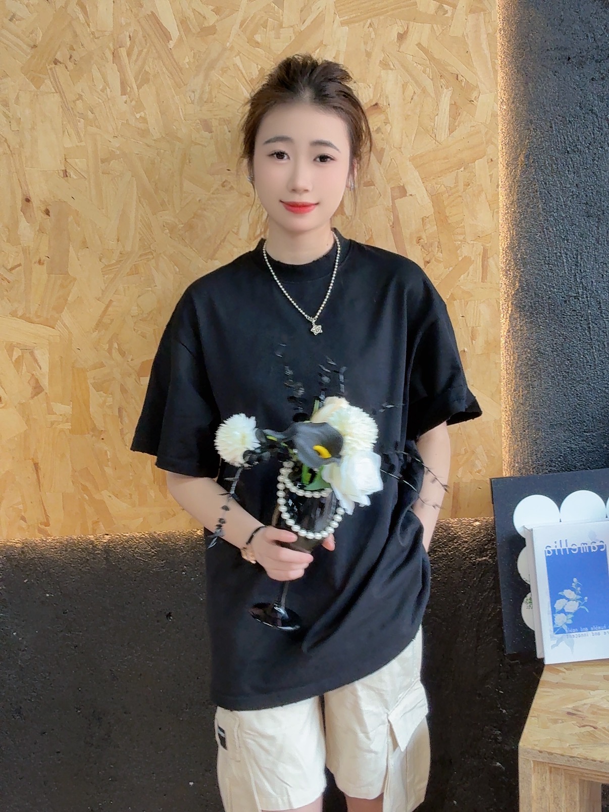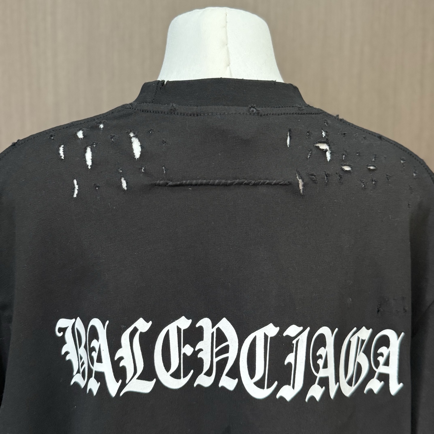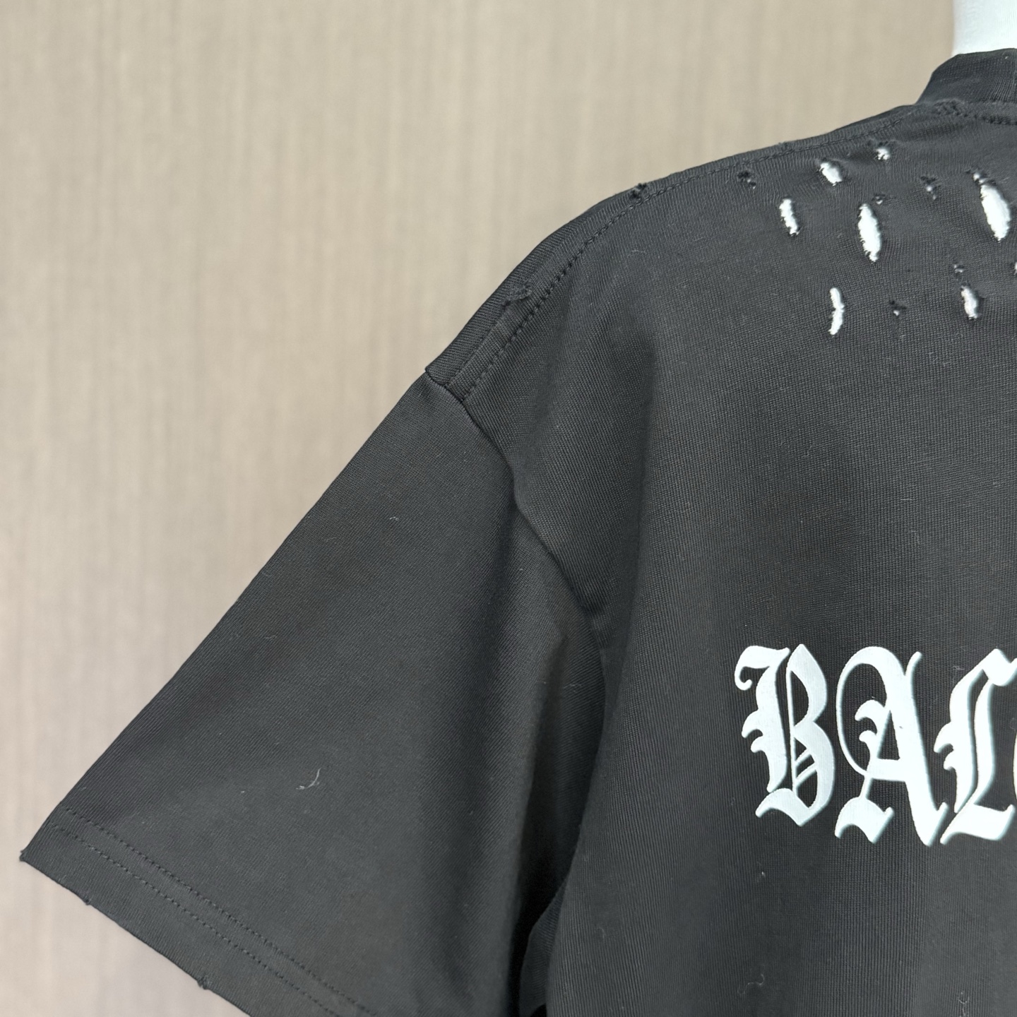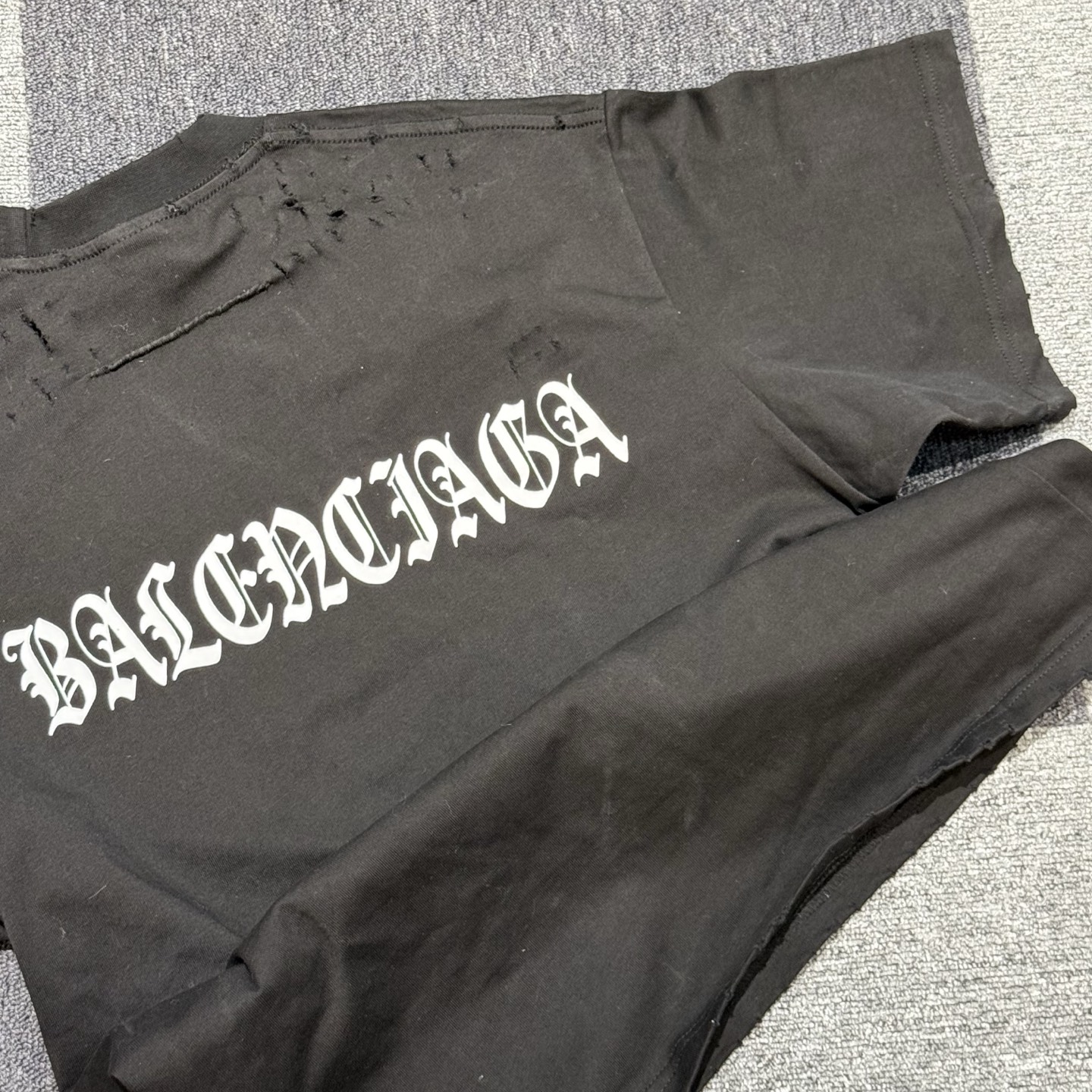 来!拼手速抢!贸易公司纯原尾单!巴黎小子 24SS 后背梵文哥特字短袖!这件Balenciaga巴黎世家短袖T恤的版型设计十分出色。它采用经典的圆领套头款式,宽松的版型既舒适又时尚,能够很好地修饰身材,适合各种体型的人穿着。