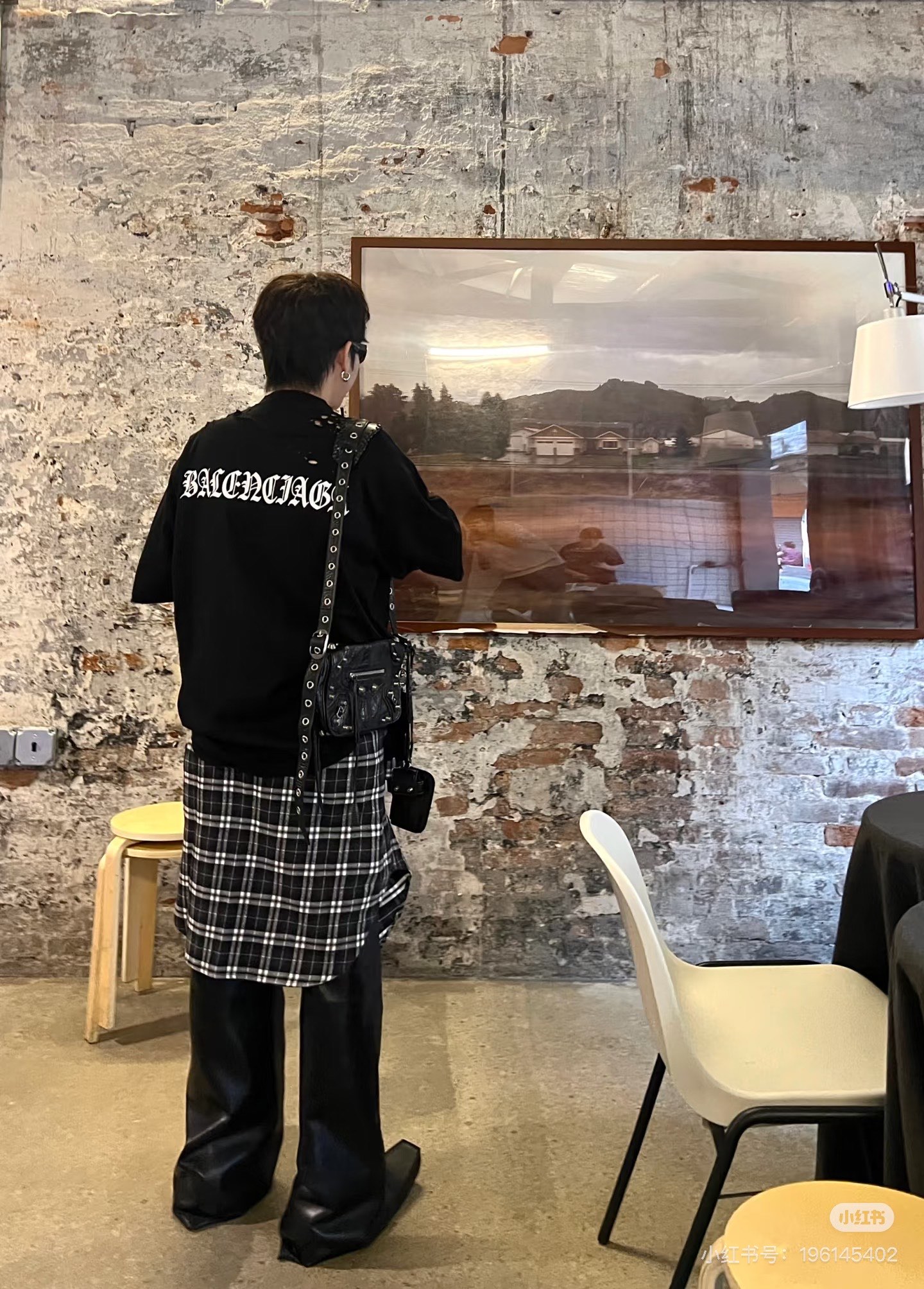 巴黎小子 24SS 后背梵文哥特字短袖,这件Balen&ciaga巴黎世家短袖T恤的版型设计十分出色。它采用经典的圆领套头款式,宽松的版型既舒适又时尚,能够很好地修饰身材,适合各种体型的人穿着。正面的乐谱印花和背面的文字设计为其增添了独特的艺术感,使其在简约中彰显个性。