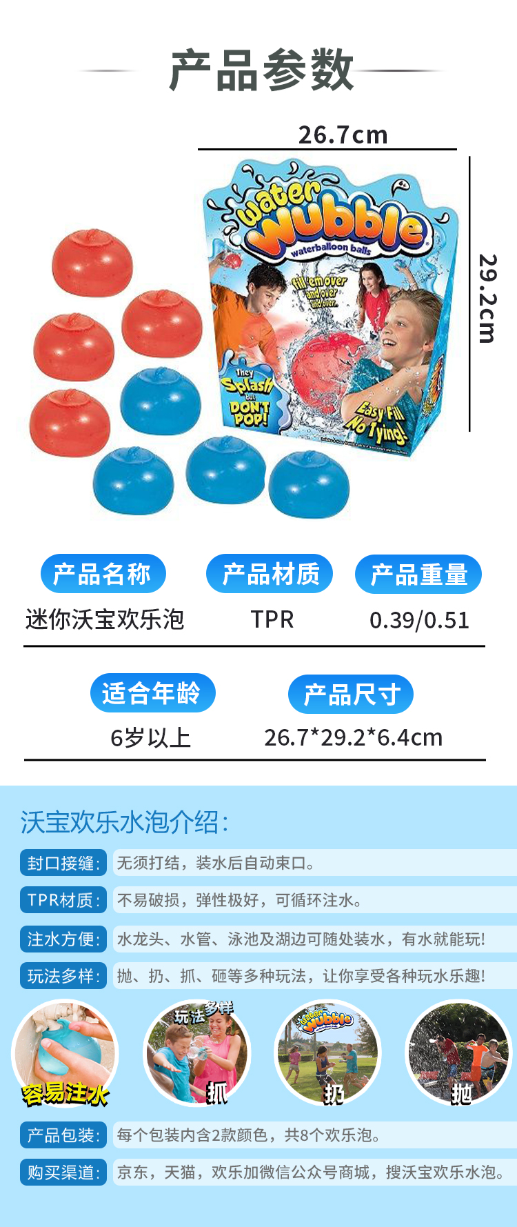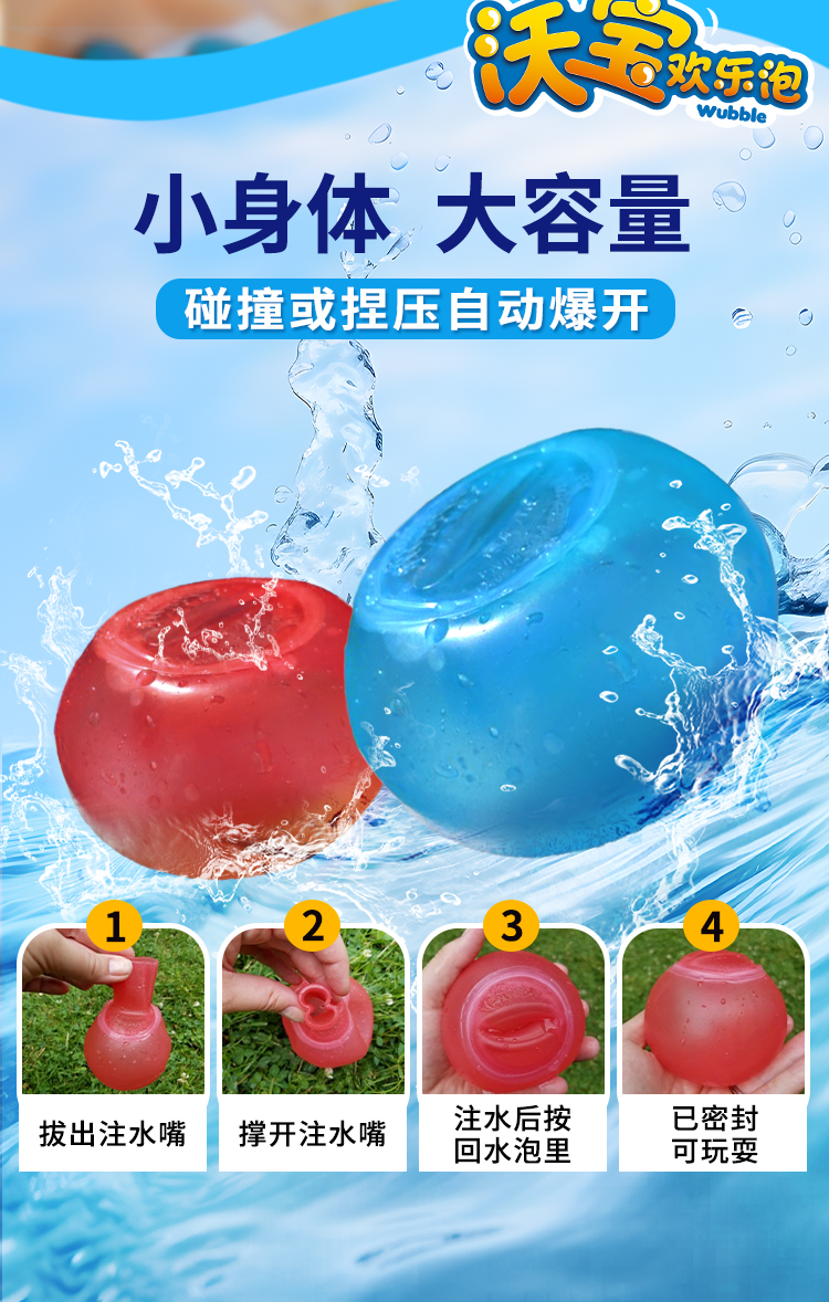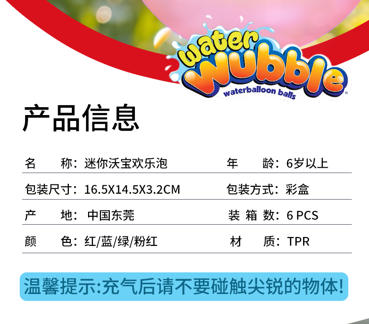 沃宝欢乐泡 WUBBLE 儿童充气户外玩具【泡泡球 /水波球】3寸波