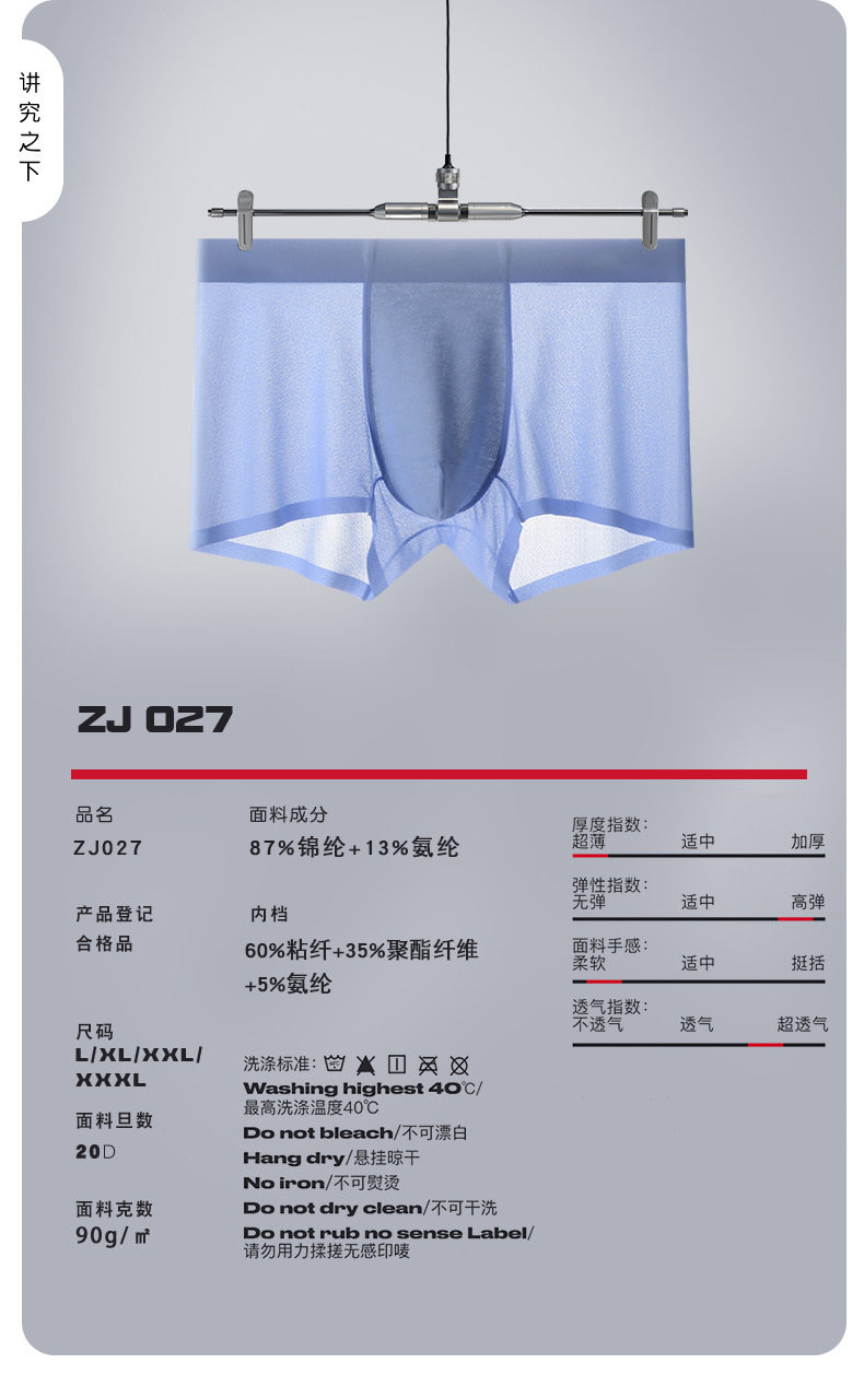 XN-ZJ027 【1条】冰丝薄感蜂窝泡泡网孔无痕男士内裤纯色透气平角裤男