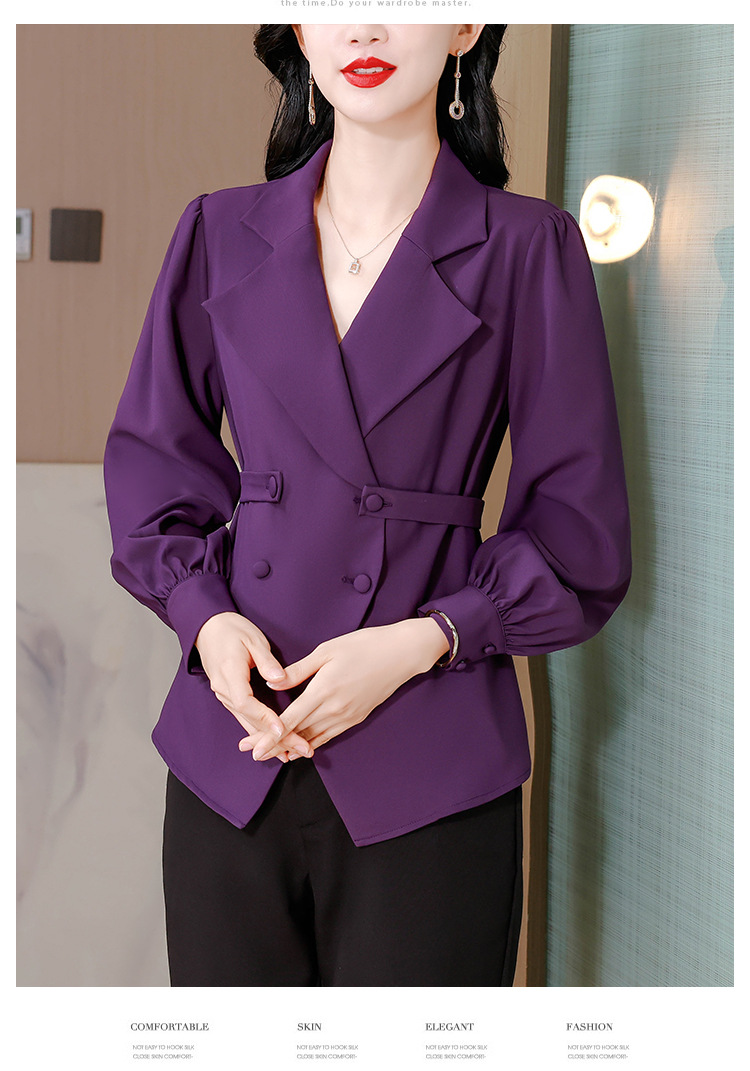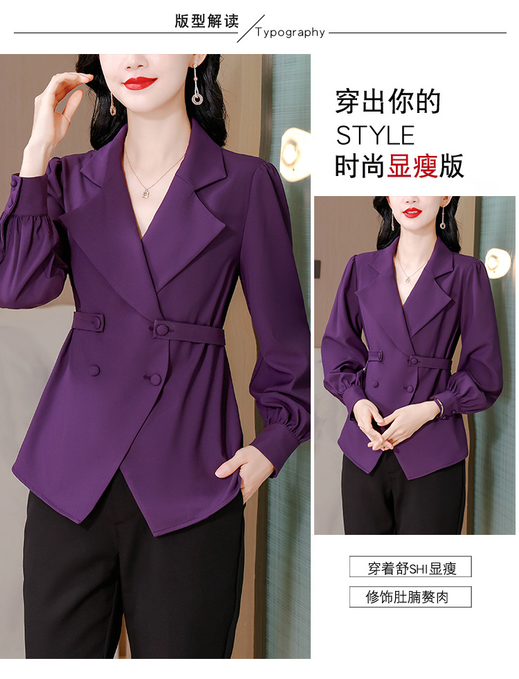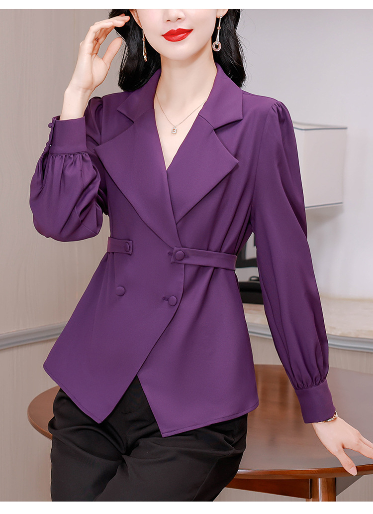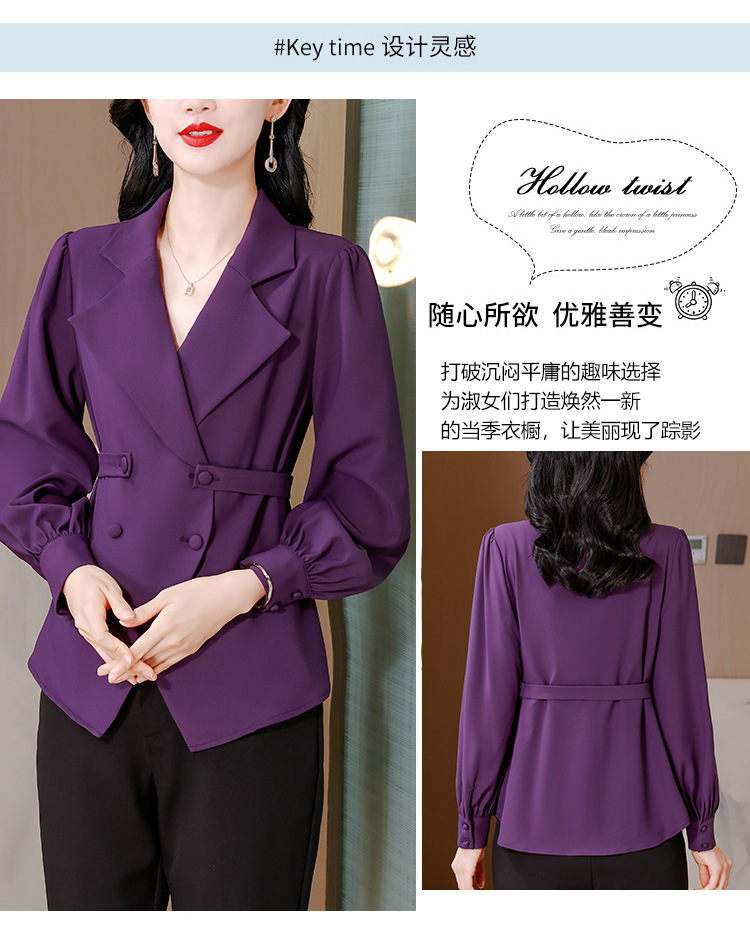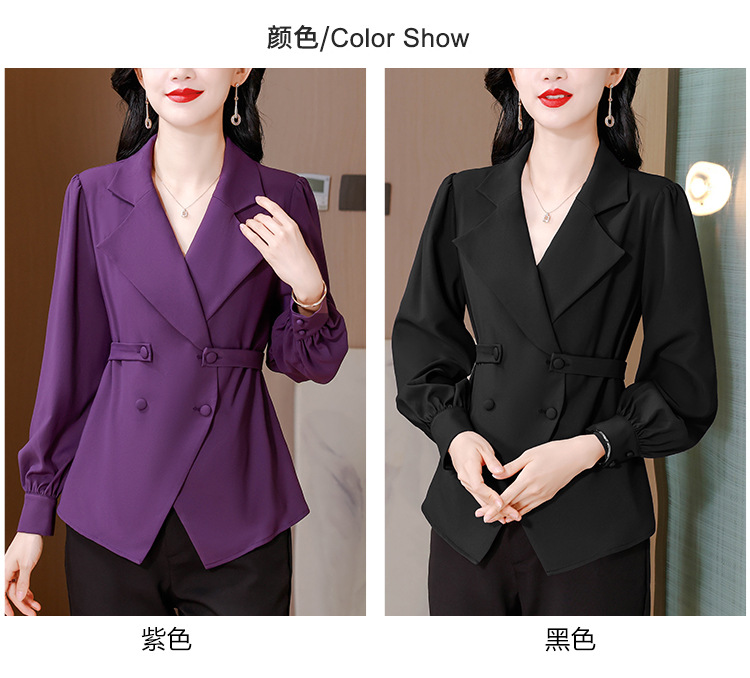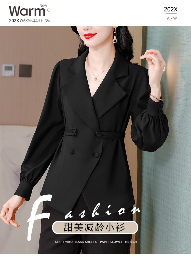 XMZ1054西装领收腰衬衫女士秋装2025新款别致洋气长袖小衫不规则气质上衣