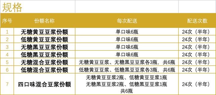 豆浆份额目前有有黄豆豆浆、黑豆豆浆两个品种。既有单品,也有混发份额,给自己和家人长期稳定又方便的饮食选择,又能支持阿源的有机事业可持续发展。