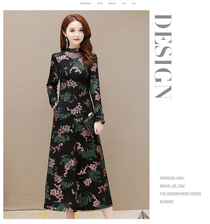 KLY1154 春夏新款气质两件套中腰修身印花七分袖连衣裙