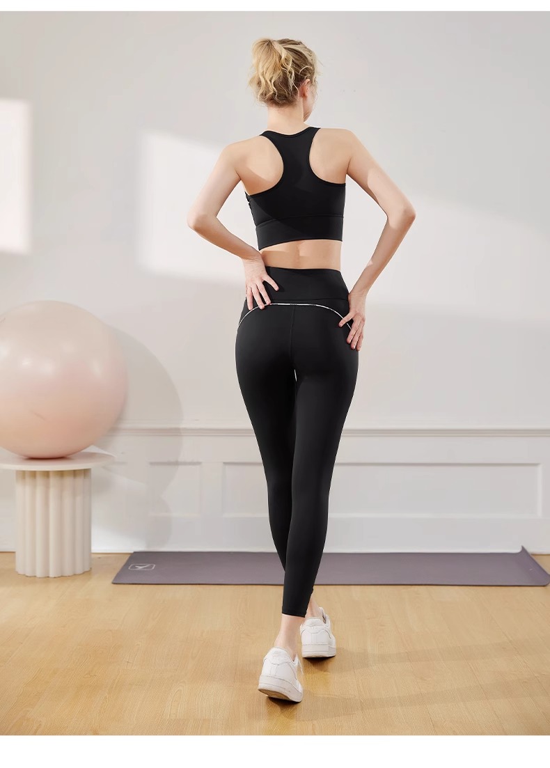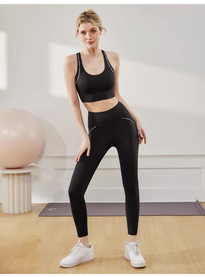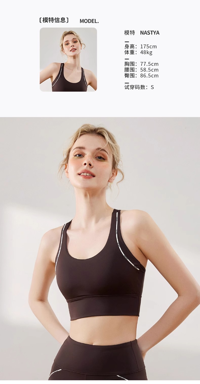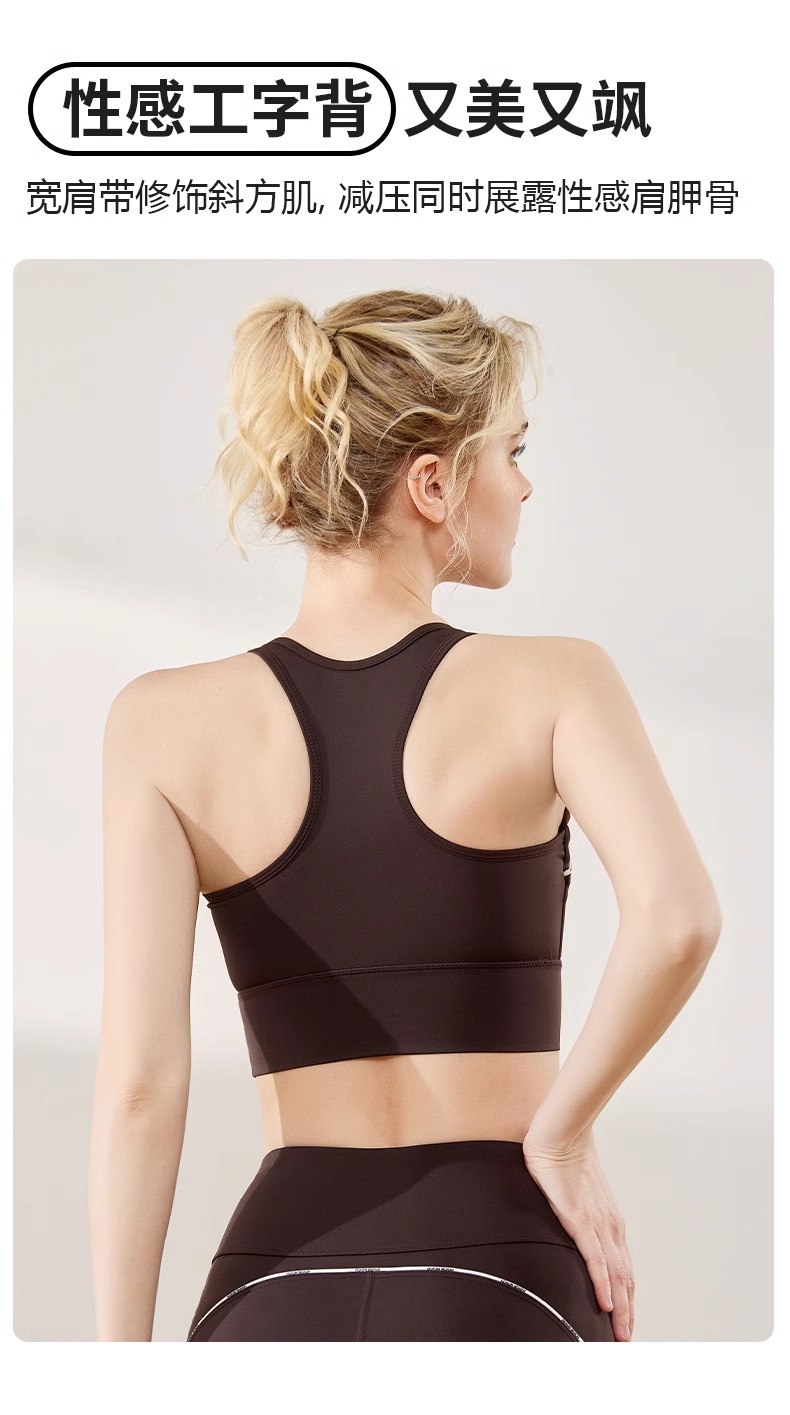 跃牌【瑜堂系列】字母线感固定一体式运动内衣高强度防震聚拢瑜伽文胸JYMN070