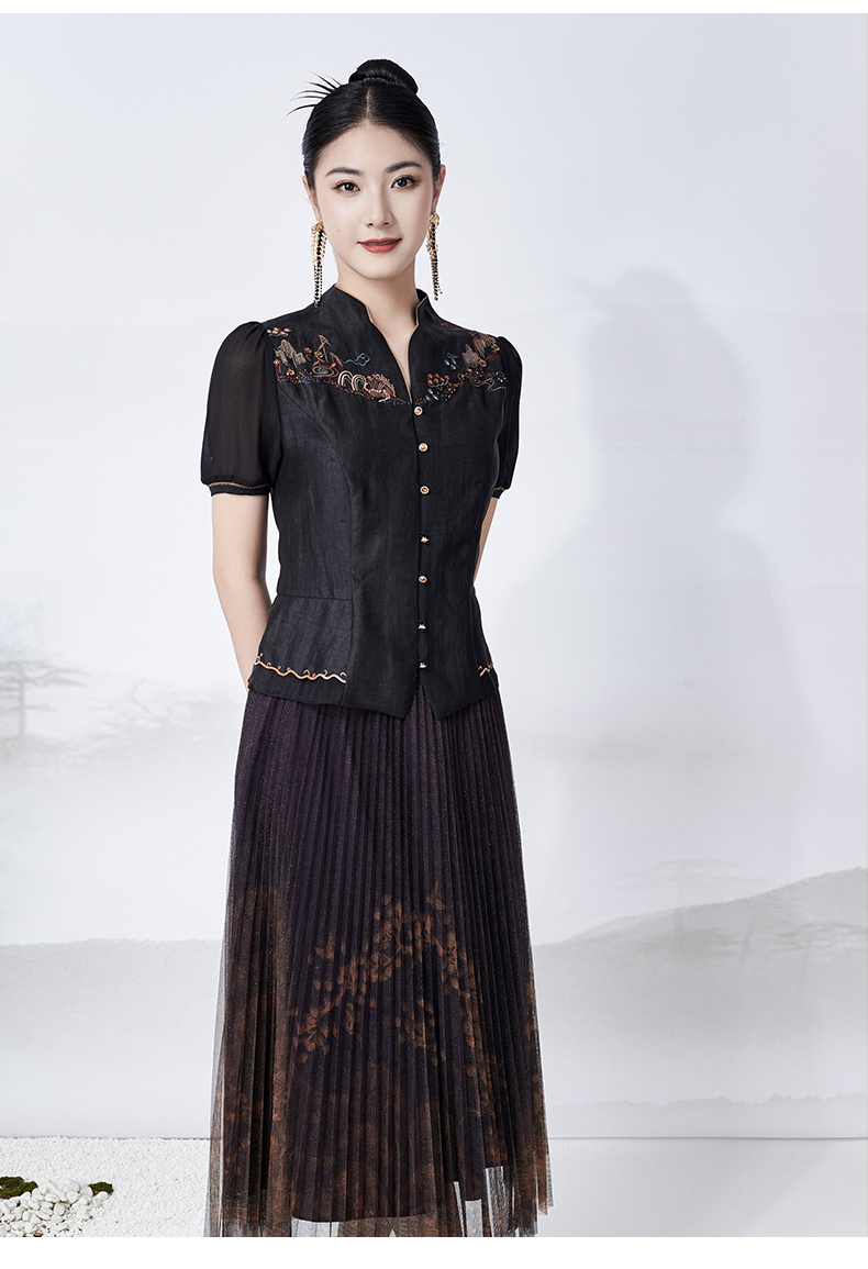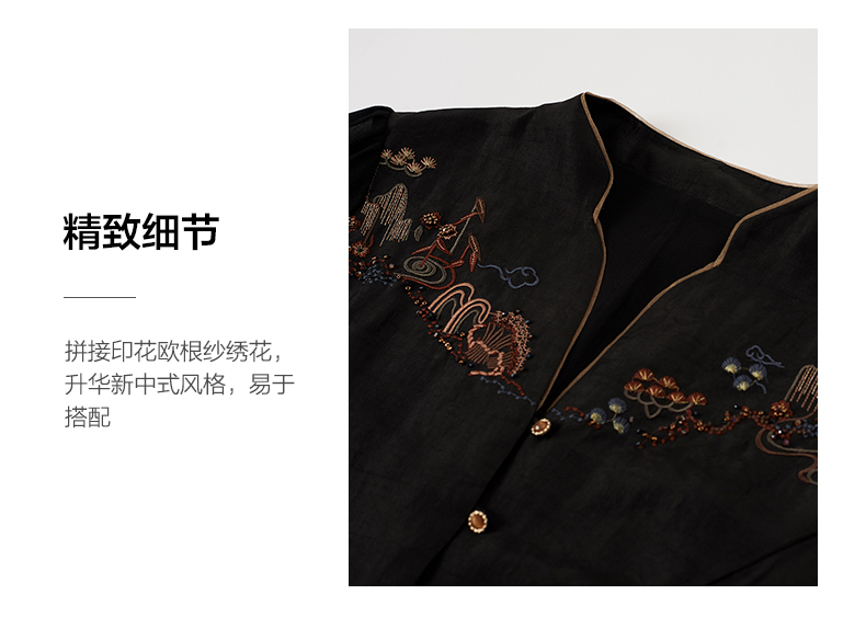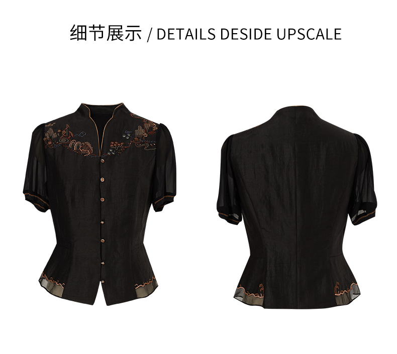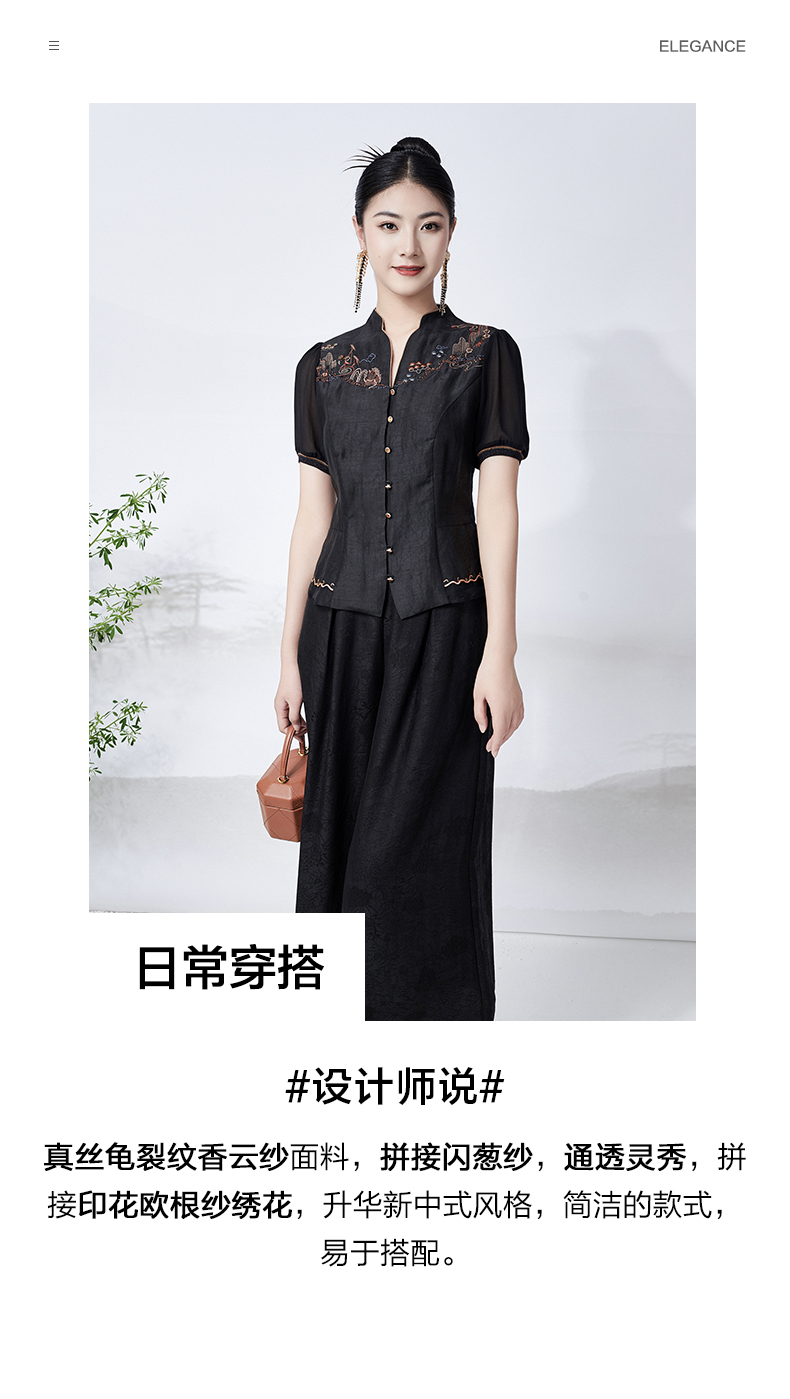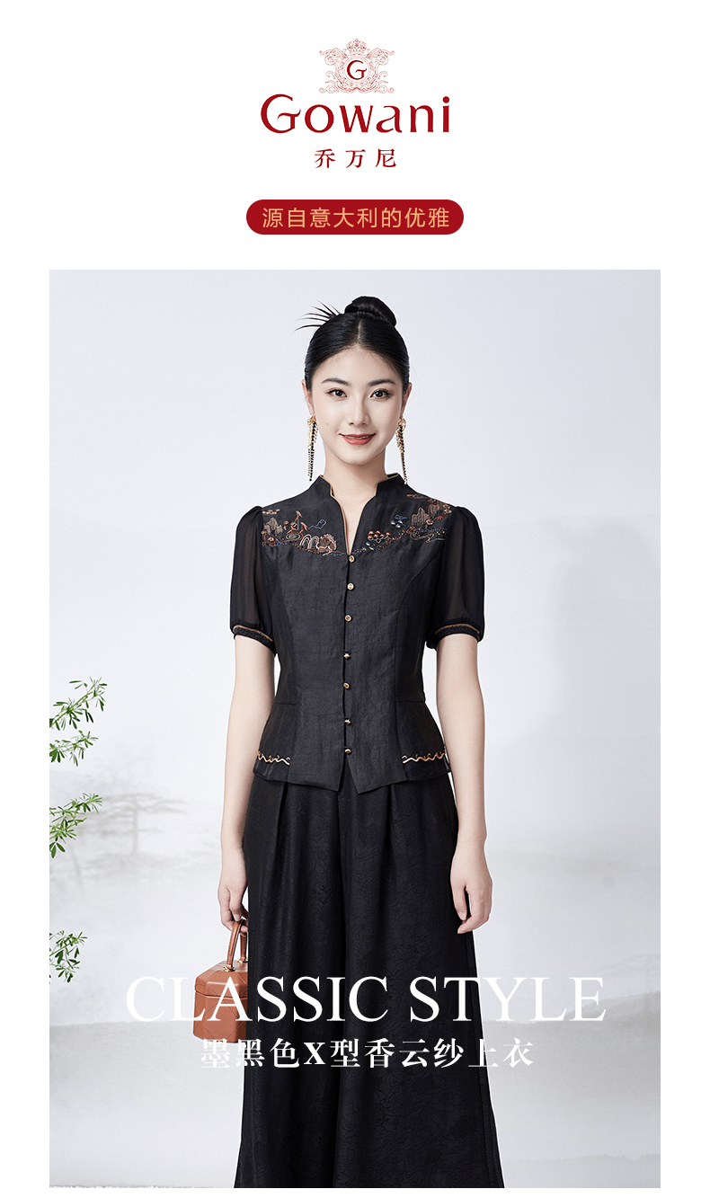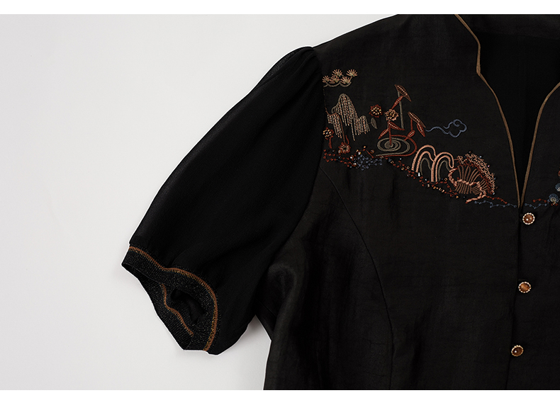 【香云纱】乔万尼龟裂纹上衣重磅20mm真丝桑蚕丝短袖衬衫ET2C278