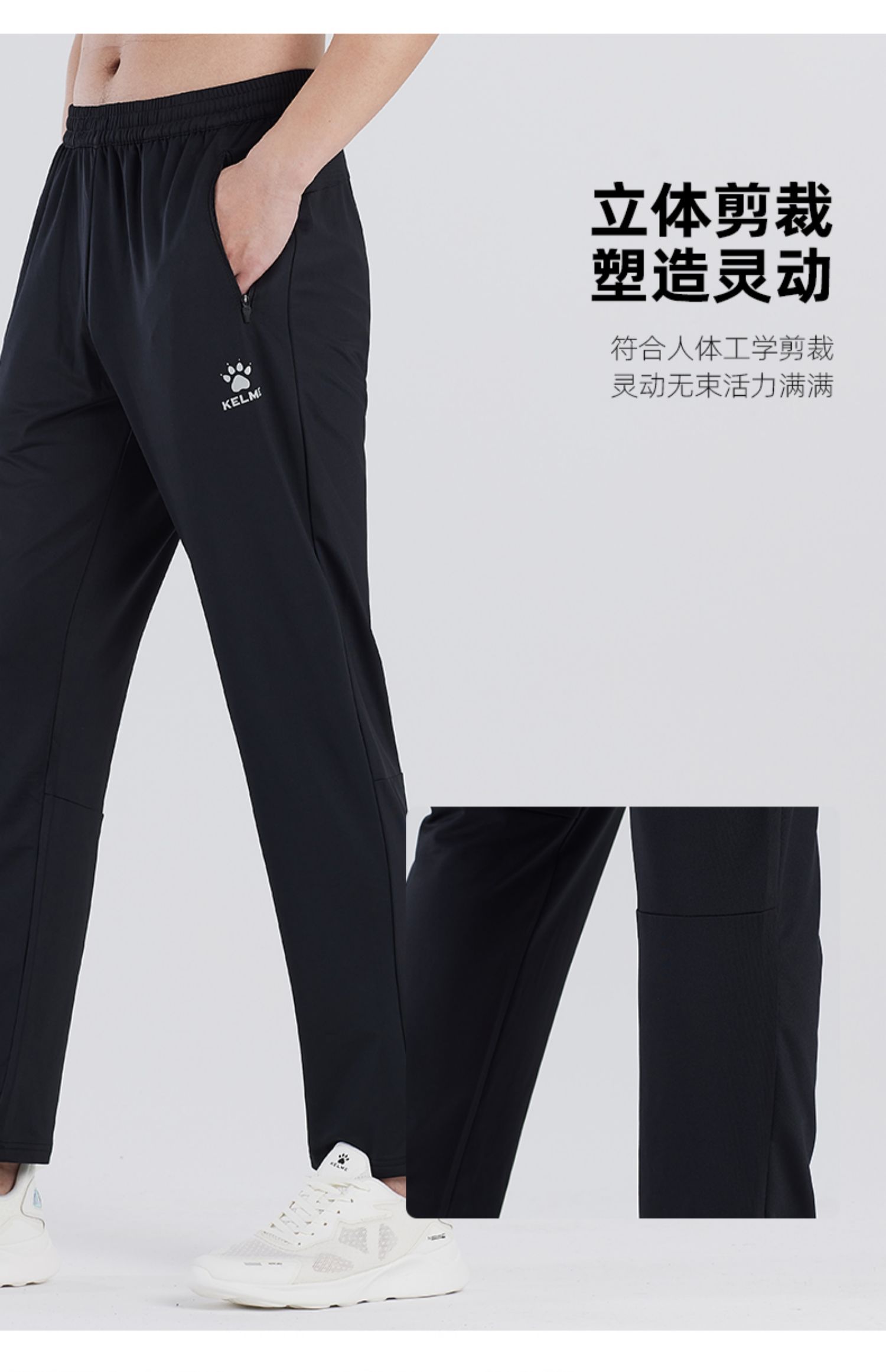 KELME卡尔美训练足球裤针织直筒运动长裤男弹力黑色跑步休闲裤子