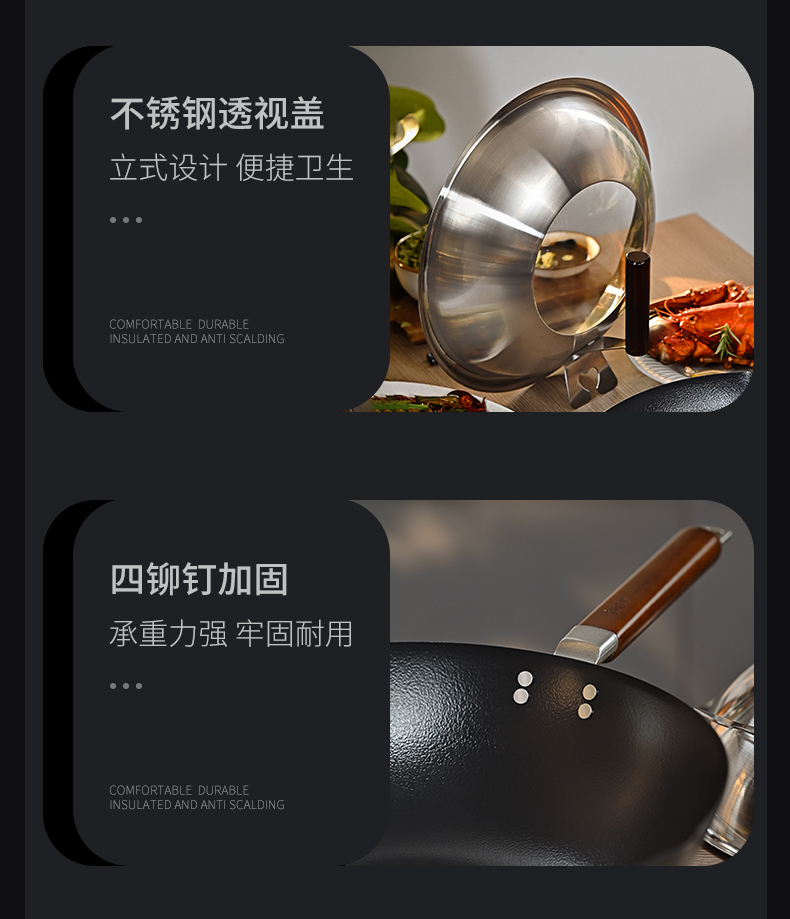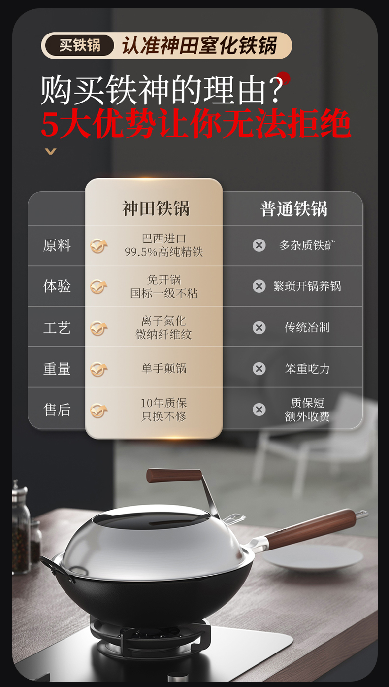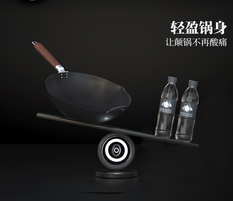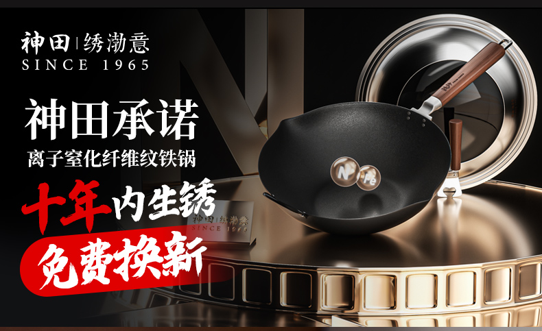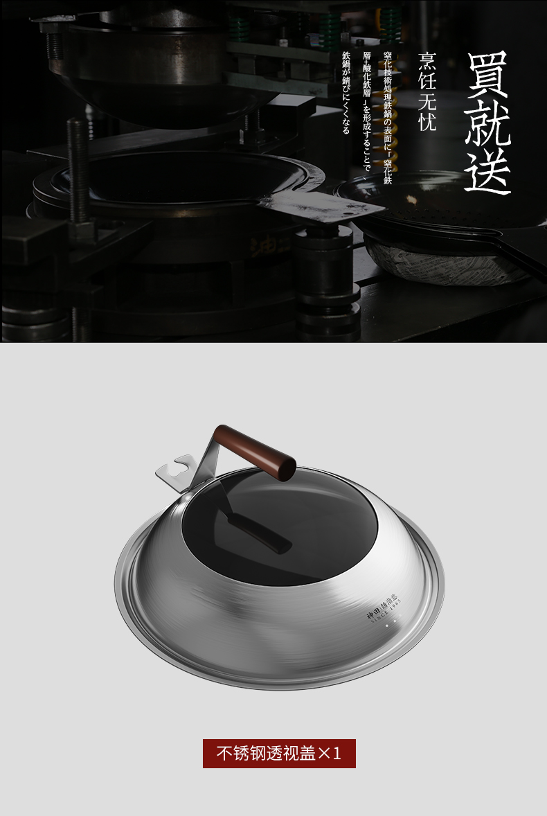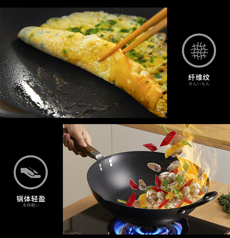 神田 (KANDA)铁神系列三代纤维纹中式无涂层炒锅 30/33cm 加赠锅盖