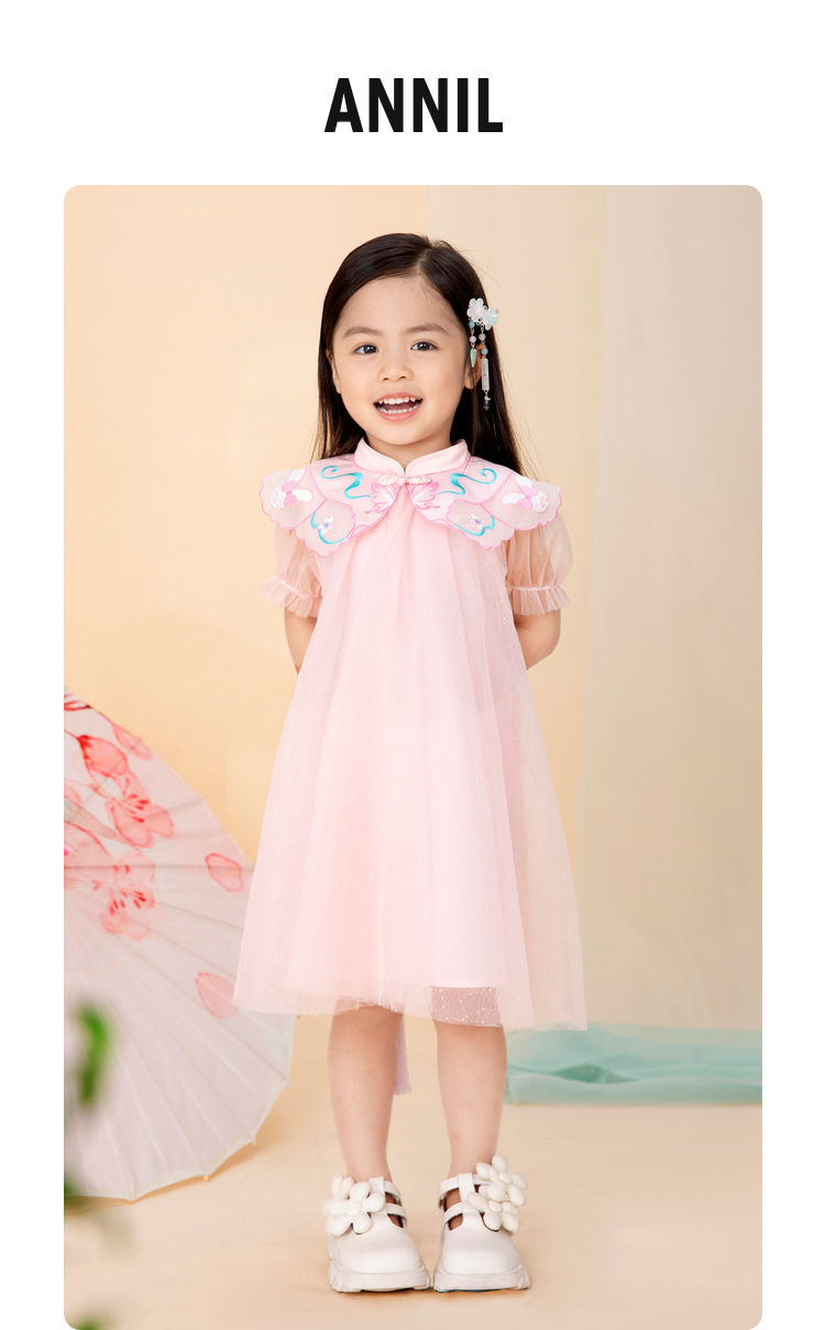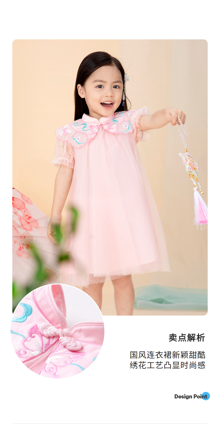 【实体店同款】女童短袖连衣裙国风裙夏新款安奈儿童装XG323618