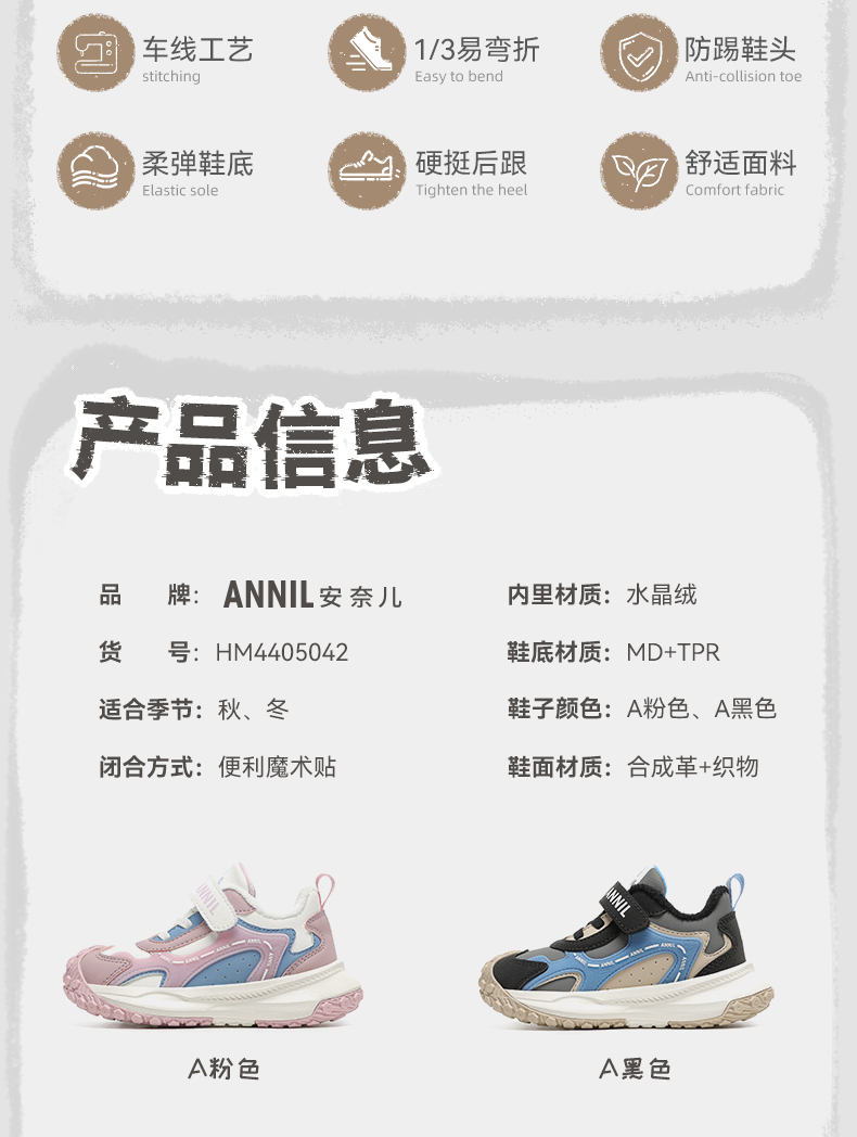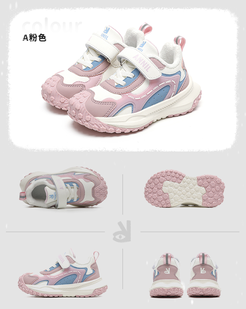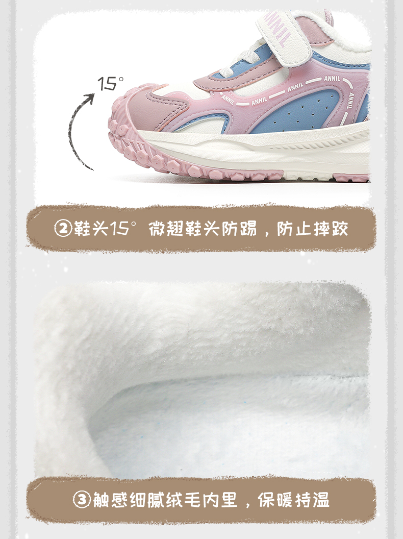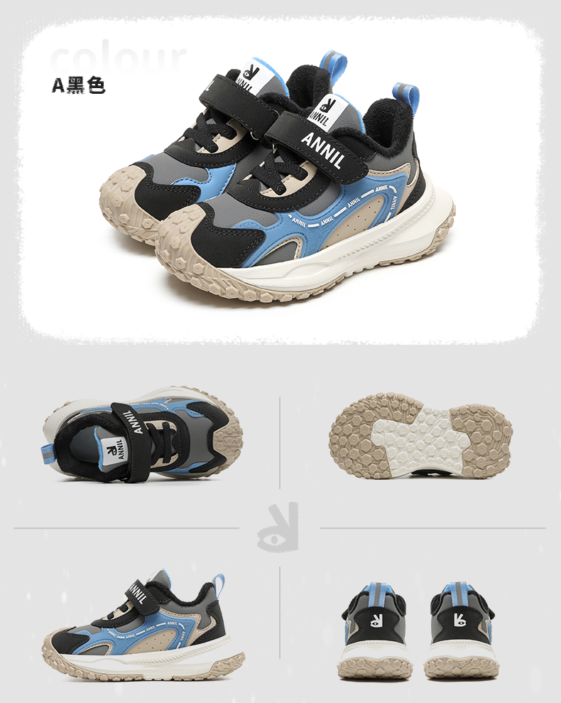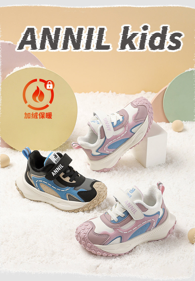 【加绒】ANNIL/安奈儿休闲鞋防滑冬季新款男女童运动鞋宝宝加厚加绒棉鞋HM4405042