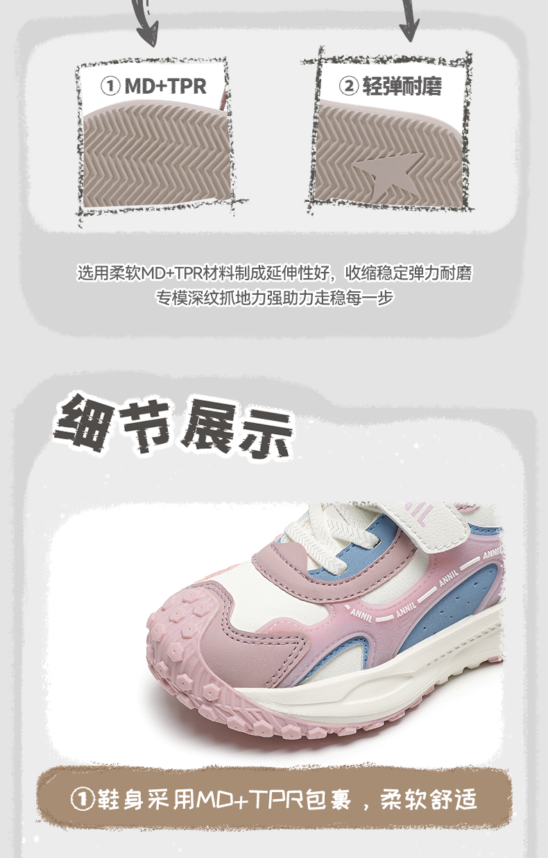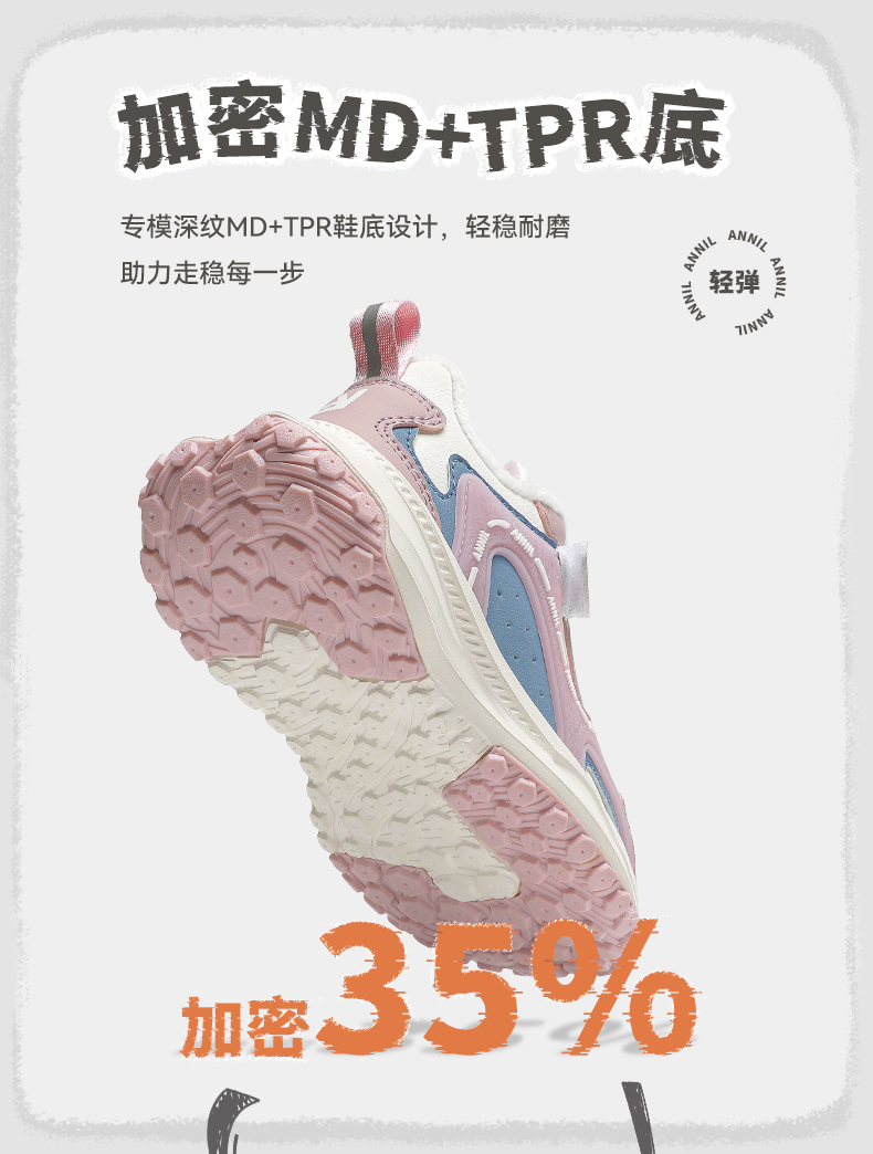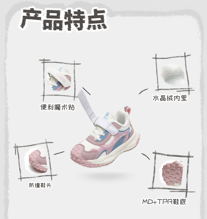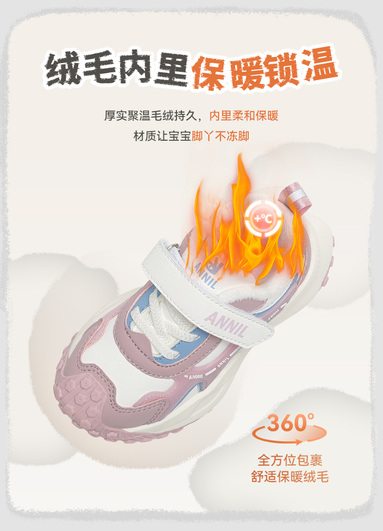 【加绒】ANNIL/安奈儿休闲鞋防滑冬季新款男女童运动鞋宝宝加厚加绒棉鞋HM4405042
