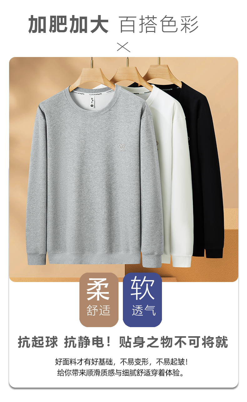 【新款DX】大依优型大码圆领卫衣长袖加肥加大休闲运动上衣男打底衫胖子男士300斤