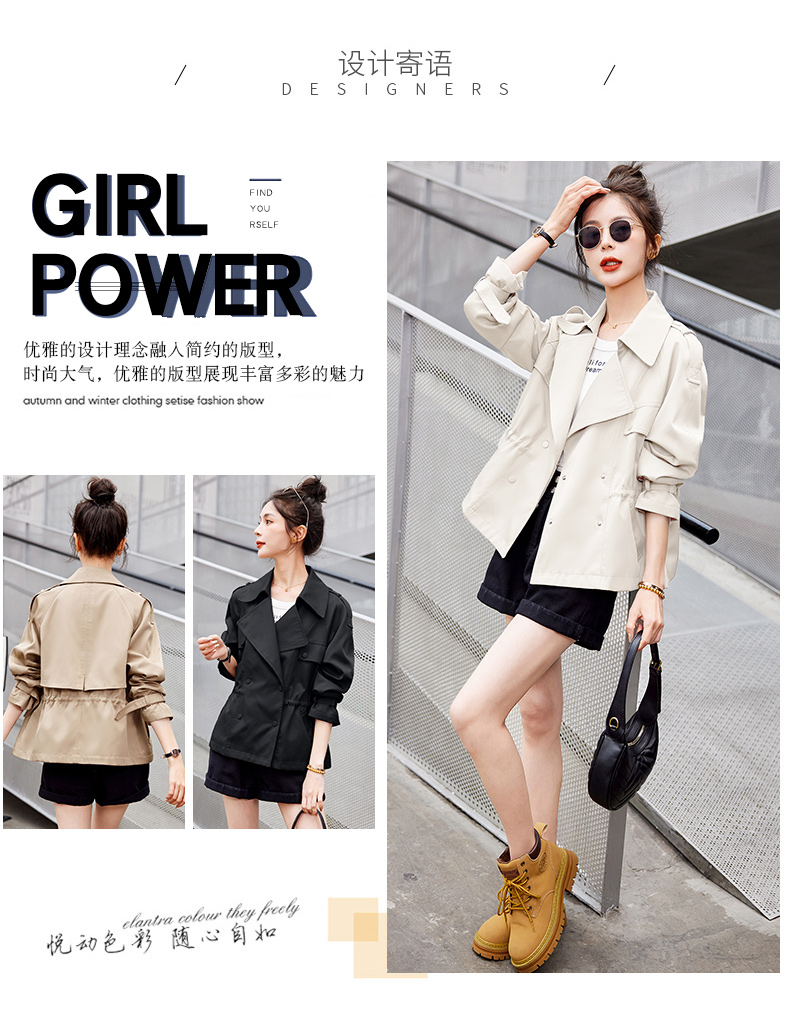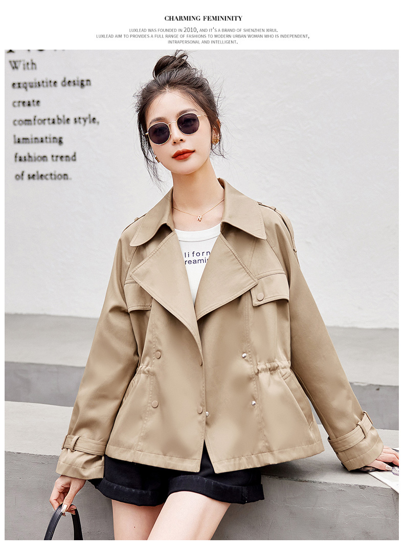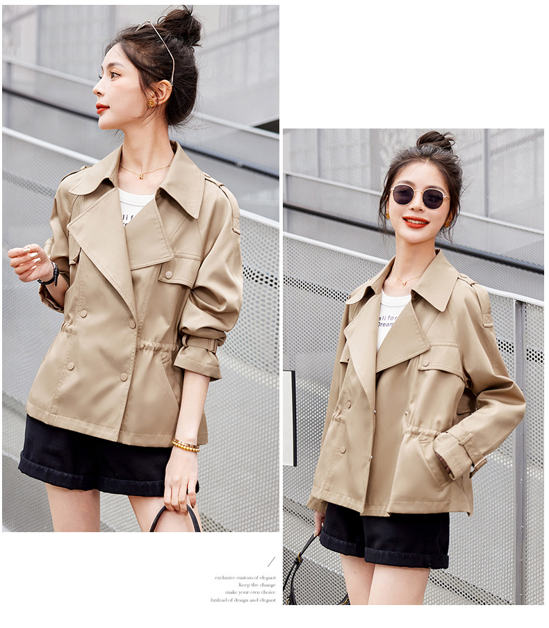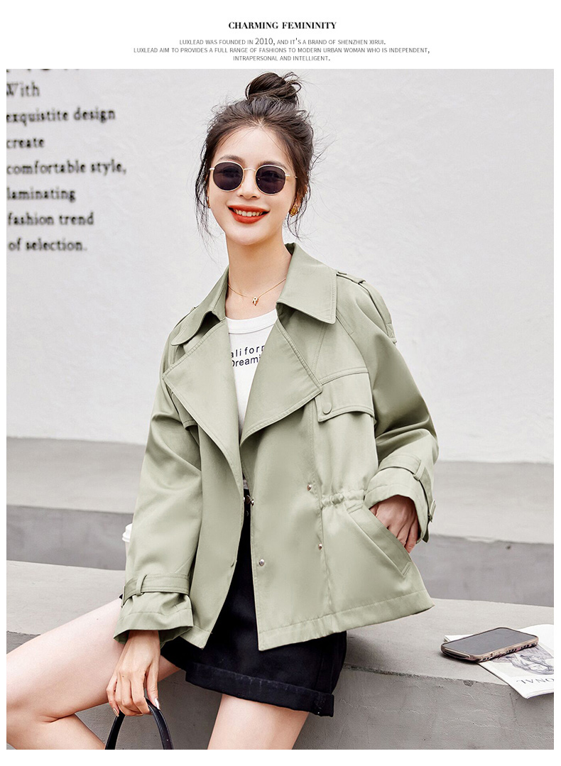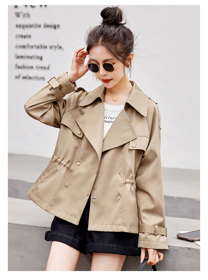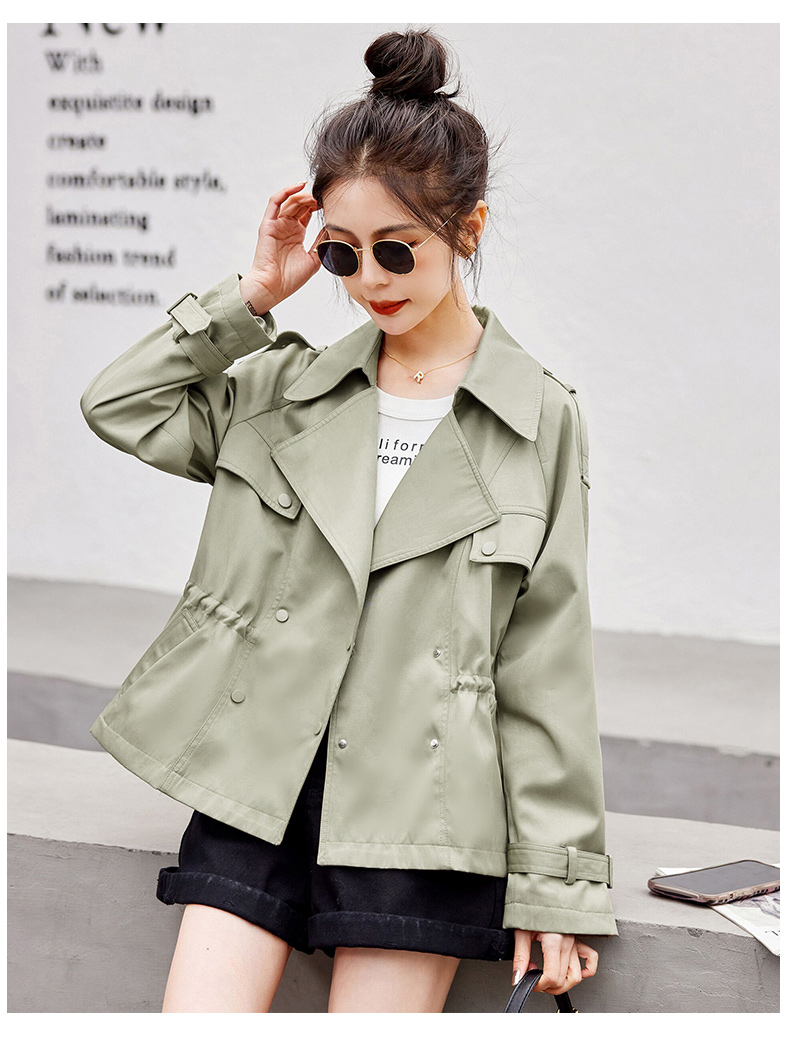 西装领抽绳韩版,短款风衣外套HR-ARE2368