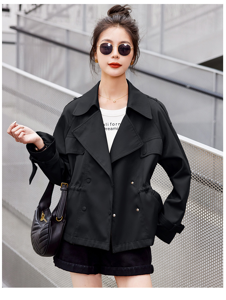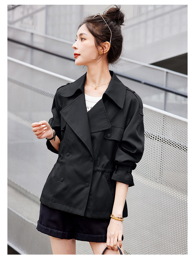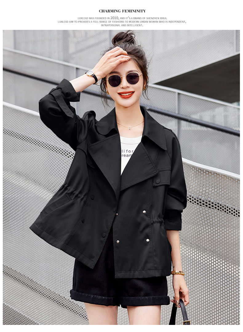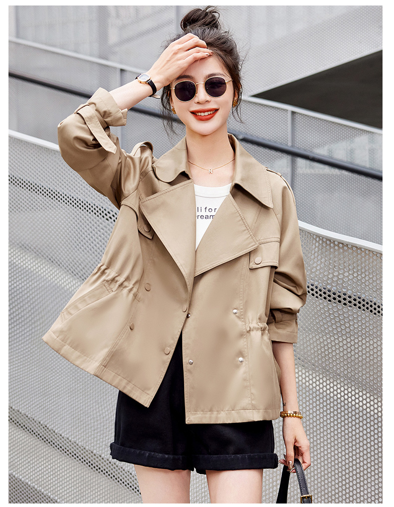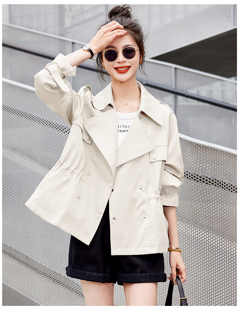 西装领抽绳韩版,短款风衣外套HR-ARE2368