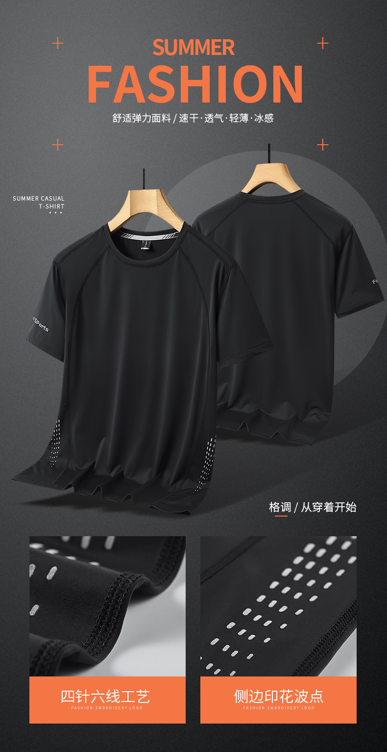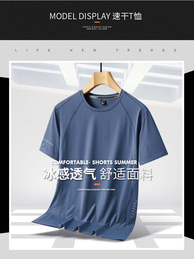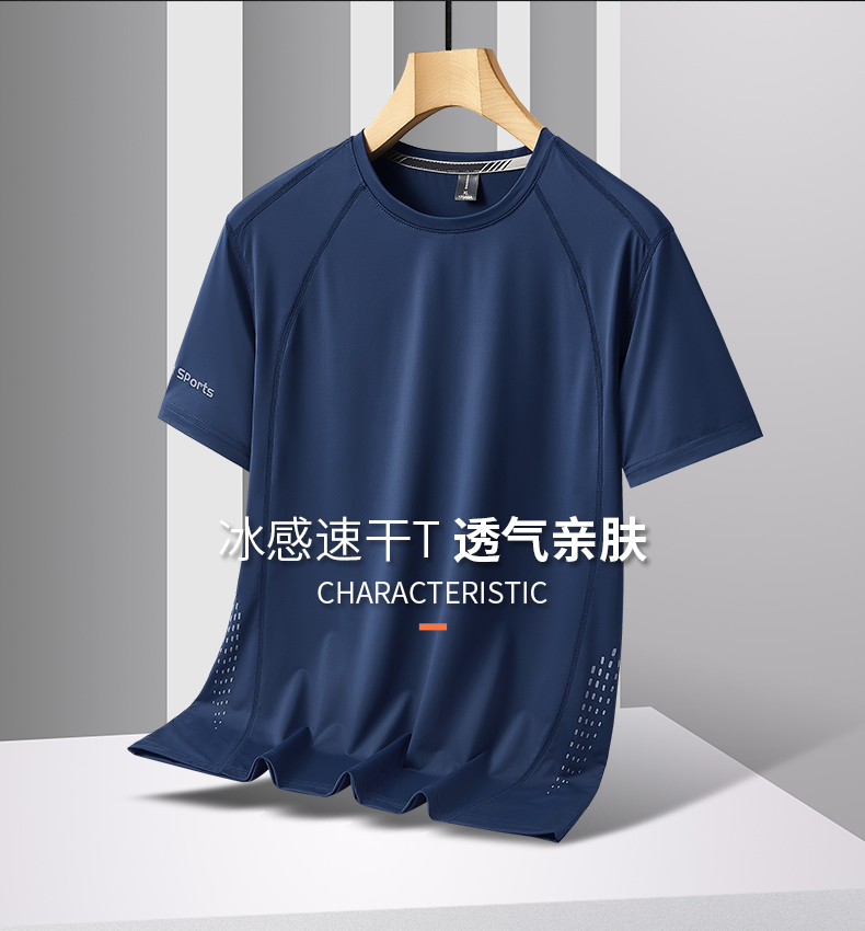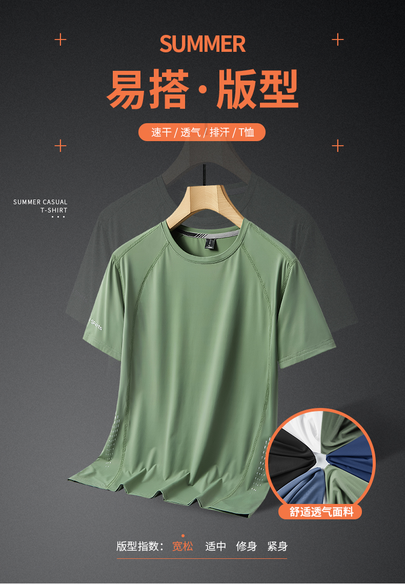 【冰丝速干】【新款DZS】大依优型大码圆领短袖T恤夏季加肥加大肥佬休闲宽松透气上衣男士半袖夏装