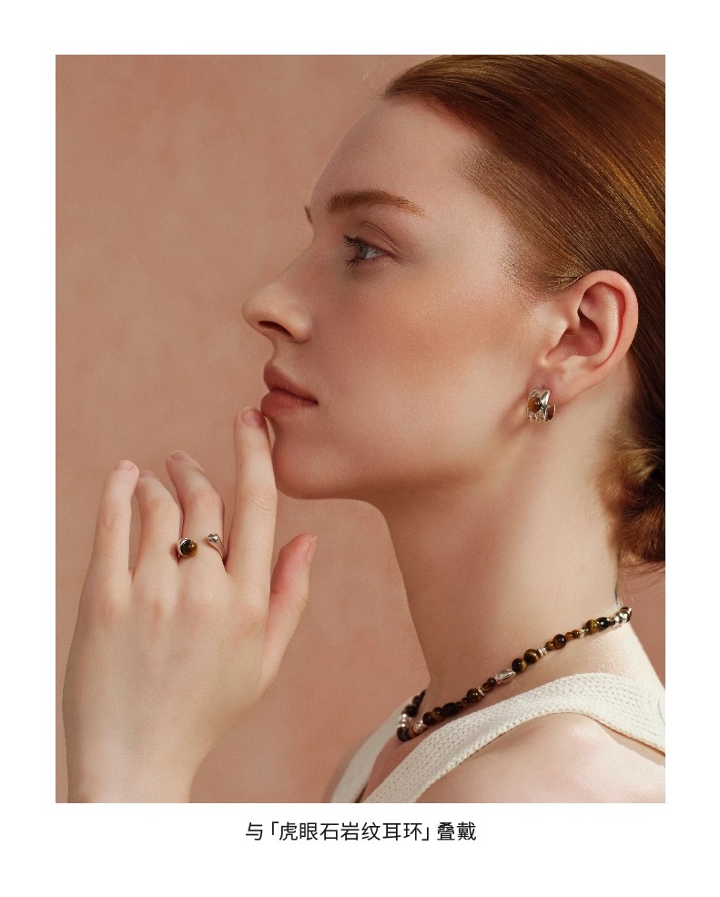 Neverfar Essential·秋冬系列虎眼石岩纹窄口椭圆开口戒指