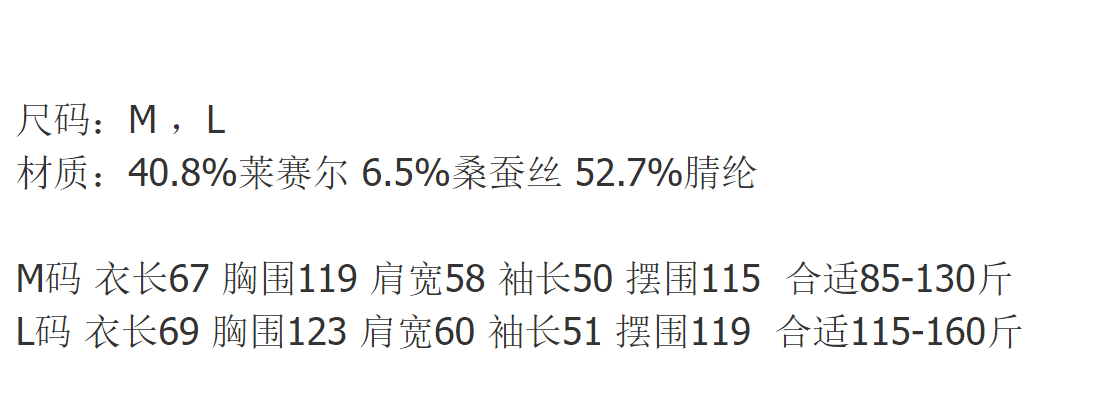 雀说桑蚕丝面膜宽松长袖T恤 女春夏莱赛尔圆领中长款打底衫AL