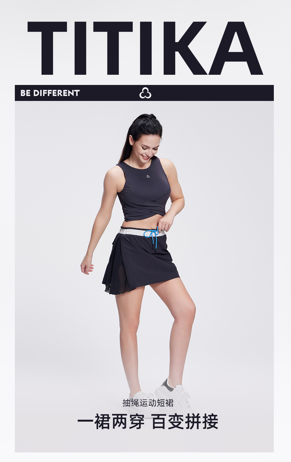 TITIKA ACTIVE 运动短裙 小百褶拉链A字裙 防走光打底花苞腰头瑜伽健身裙21147