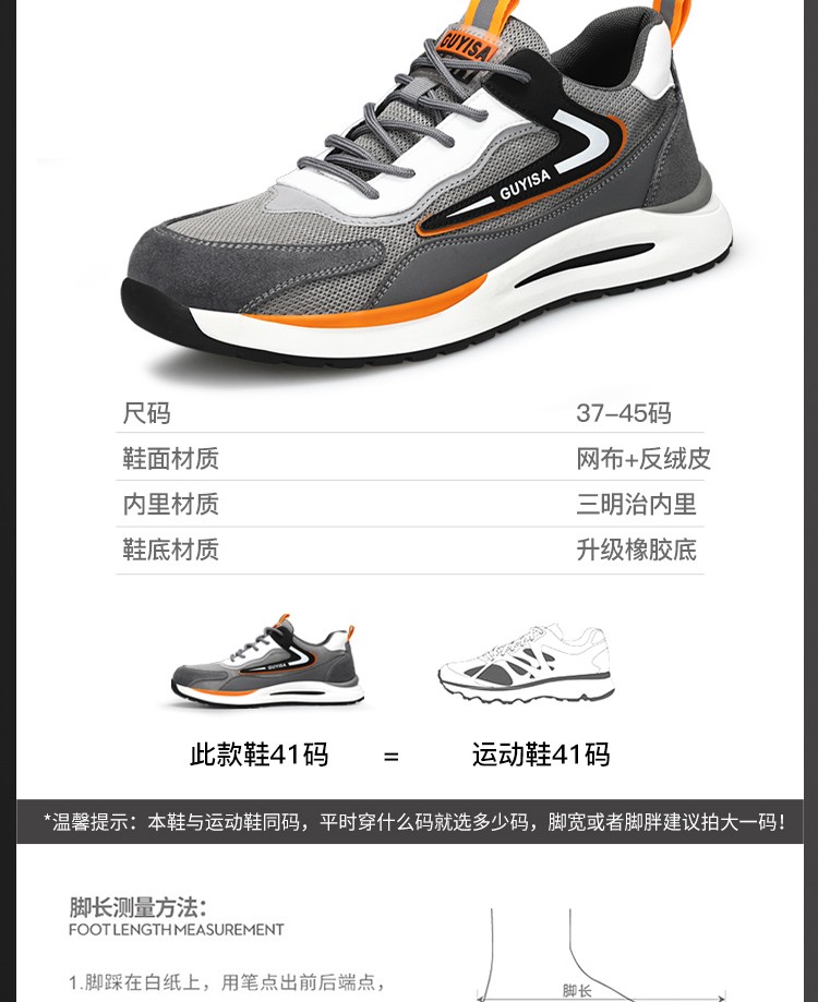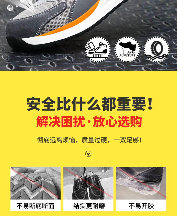 四季款劳保鞋男防砸防刺钢包头橡胶大底透气安全鞋工作鞋