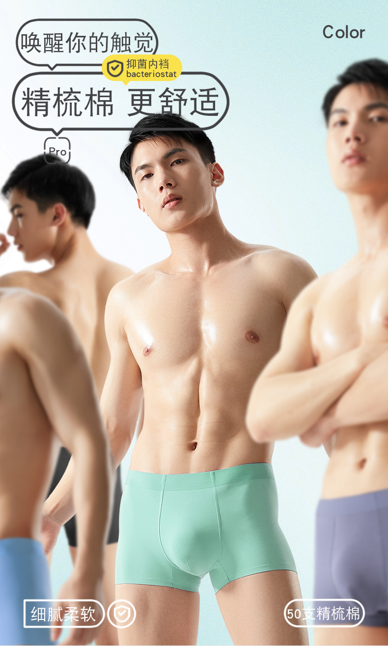 新热卖!会呼吸的透气棉【男士纯棉内裤】50支精梳棉 双层呼吸网孔结构 吸汗透气 不卷边