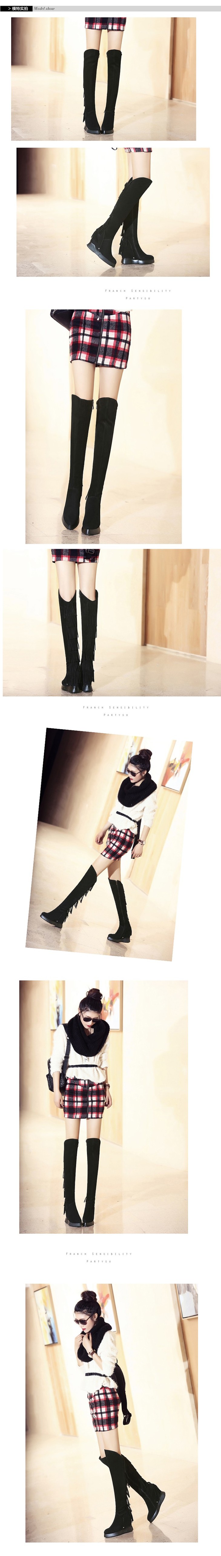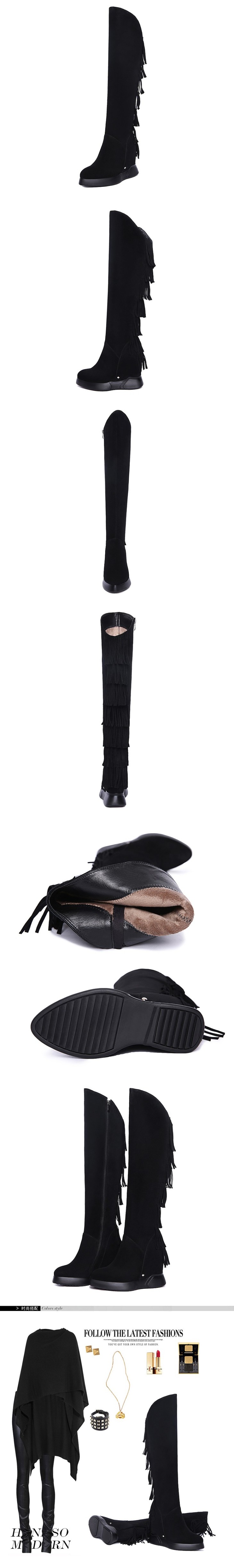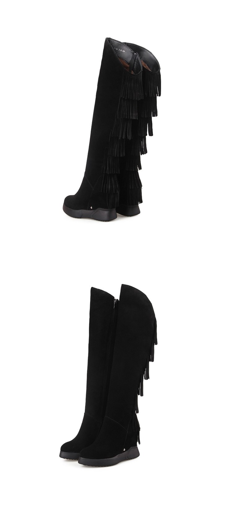 上海旗袍厂DTN-09-10 秋冬新款磨砂真皮圆头坡跟流苏靴侧拉链纯色百搭时尚休闲高筒靴