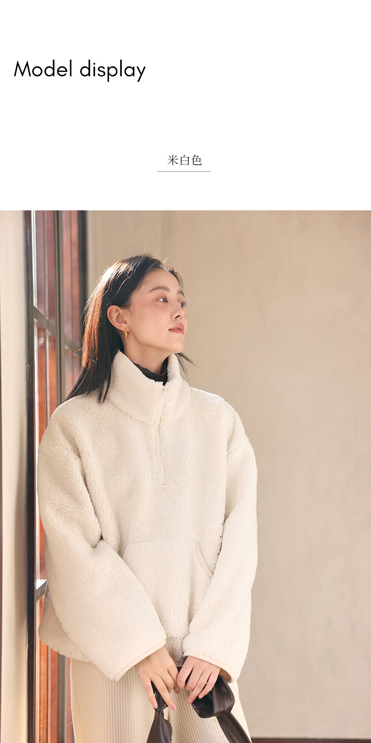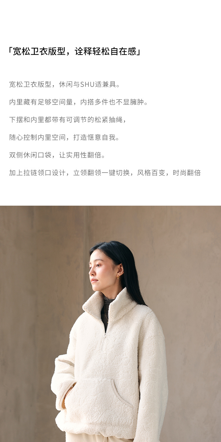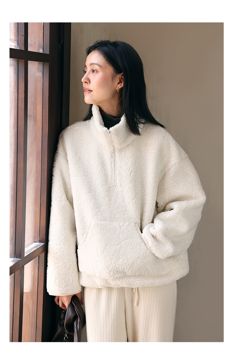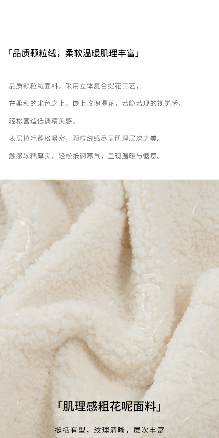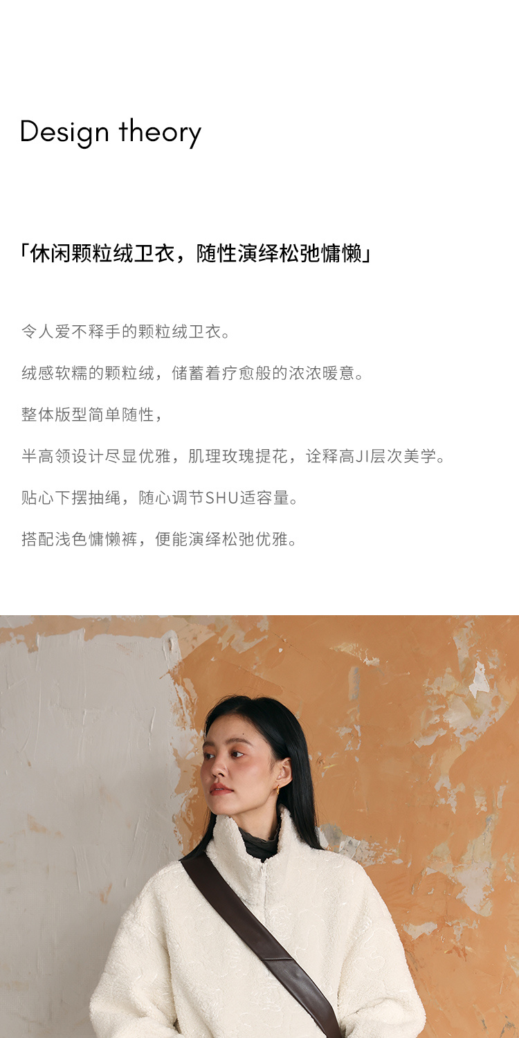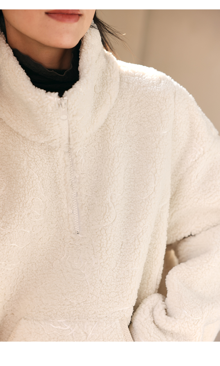 HeyDress半拉链卫衣女秋冬颗粒绒玫瑰提花外套宽松套头加厚短上衣