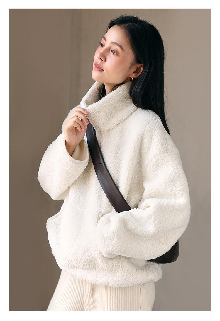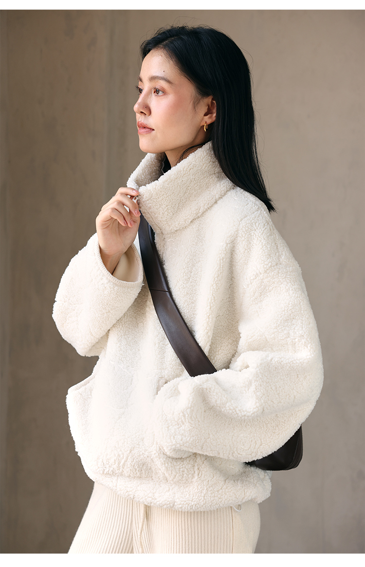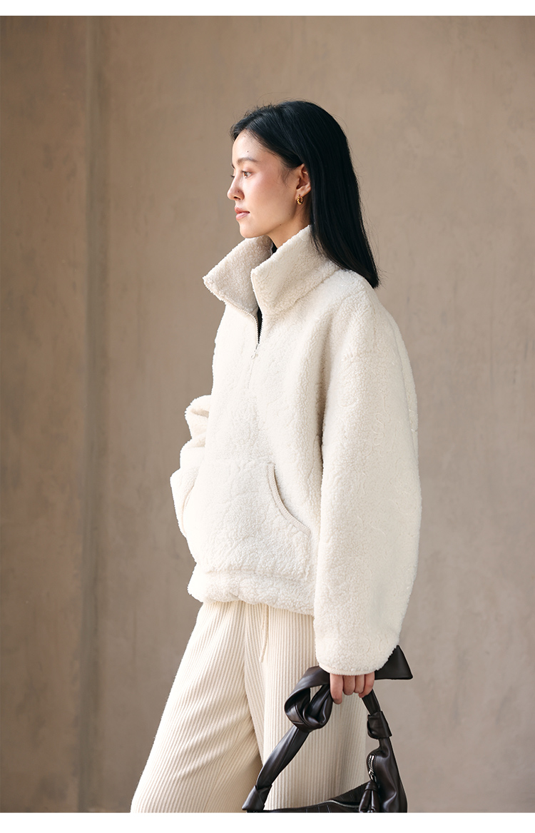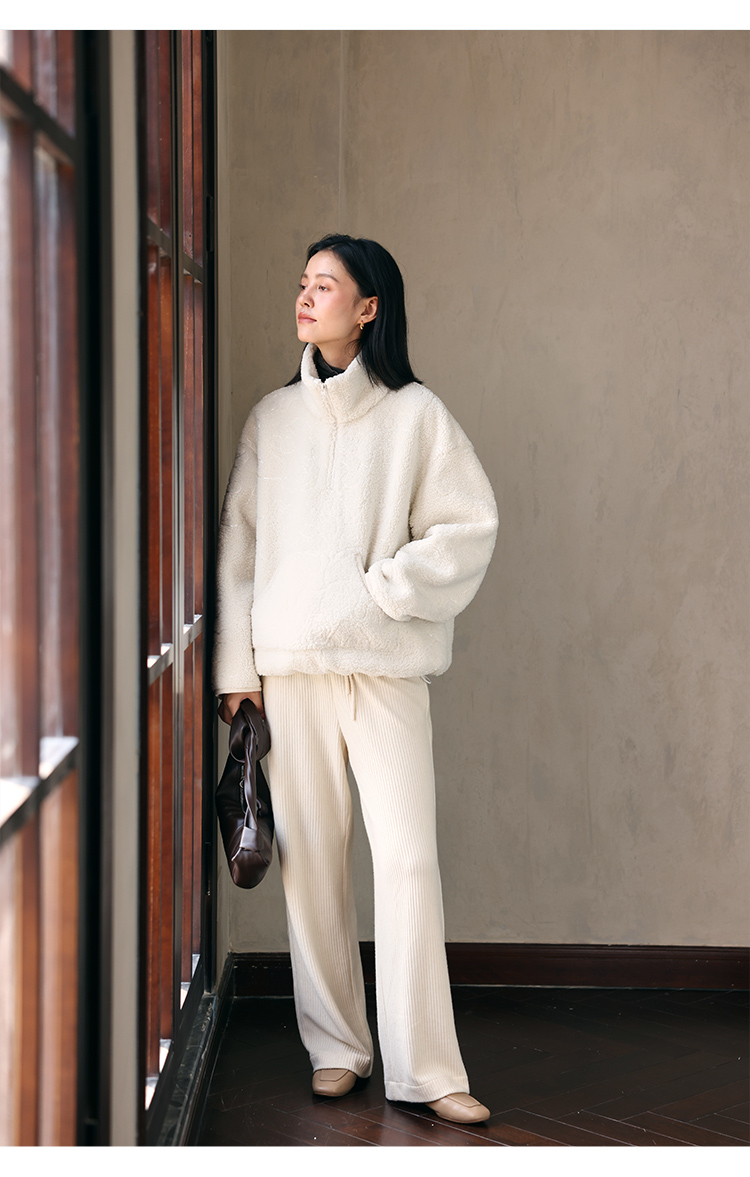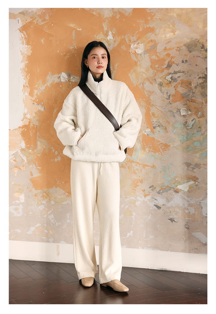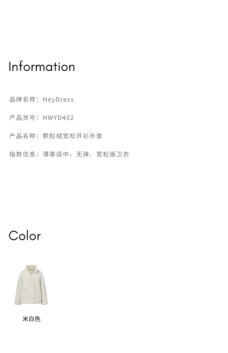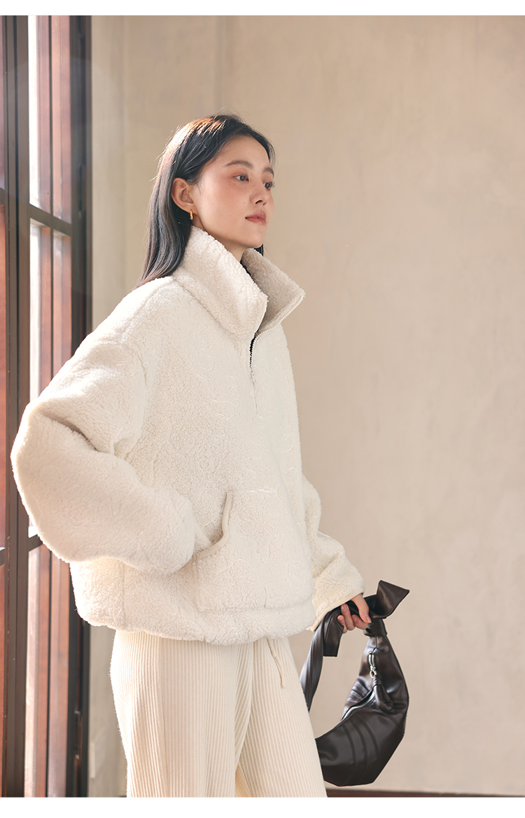 HeyDress半拉链卫衣女秋冬颗粒绒玫瑰提花外套宽松套头加厚短上衣