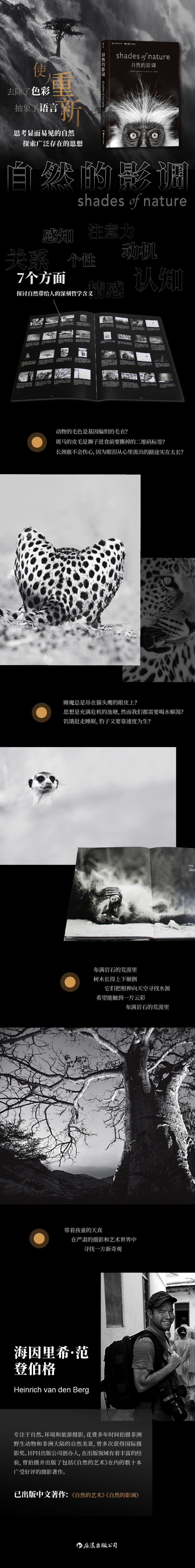 感知、注意力、关系、个性、动机、情感、认知,这些并非人类所独有,而是所有生命共有的元素。以这些元素为脉络,通过80幅黑白高清大图,本摄影图集将带你领略生命的底色,震撼于自然万物的神奇。
