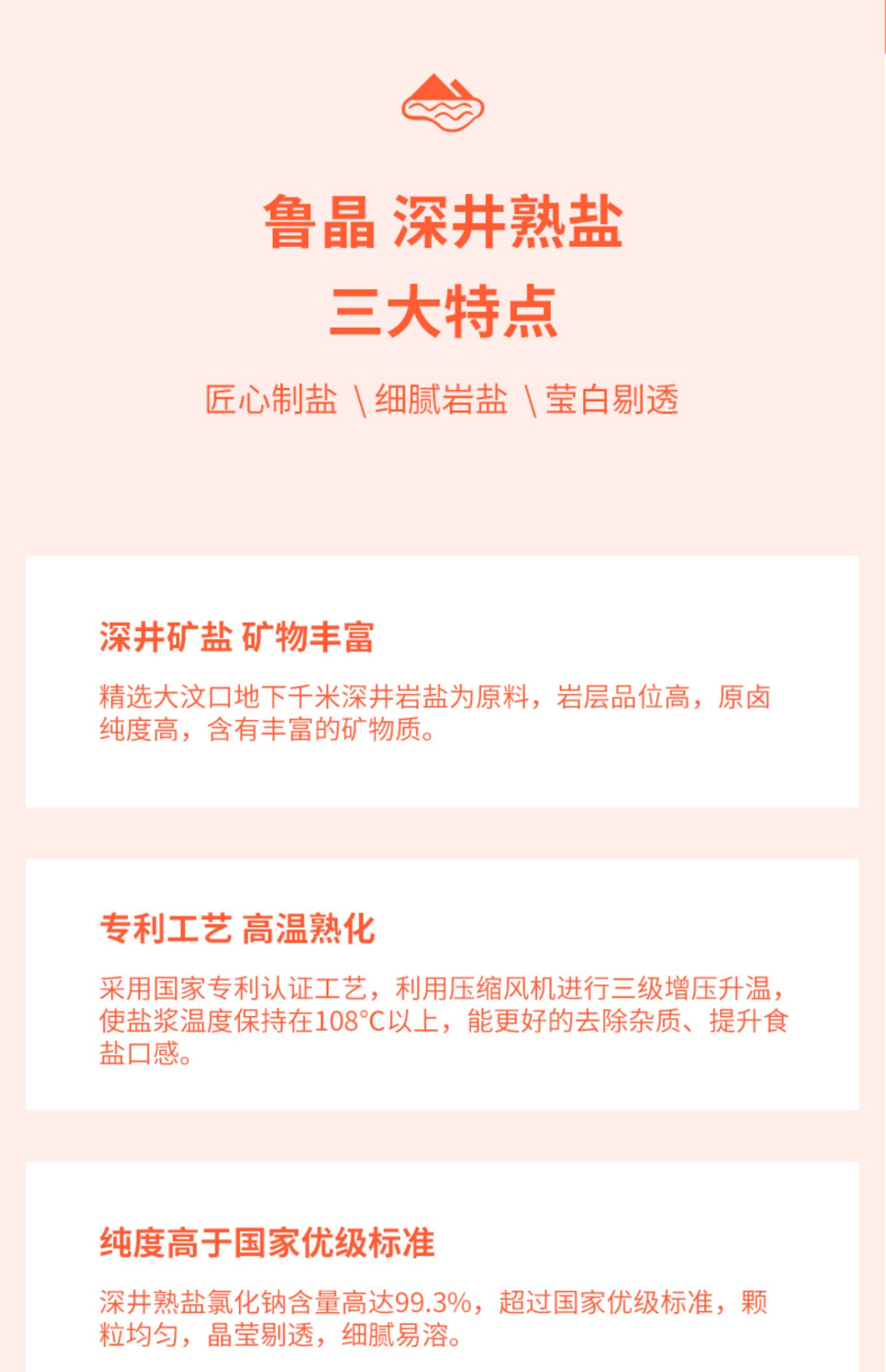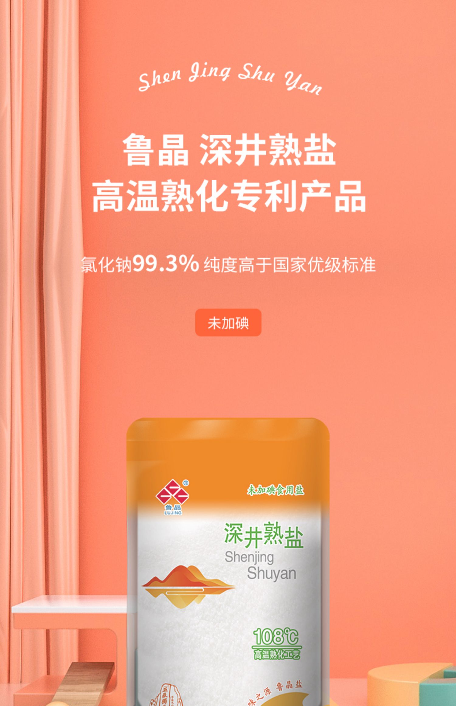 鲁晶深井熟盐未加碘食用盐细盐400g*5袋不含碘无抗结剂家庭用盐